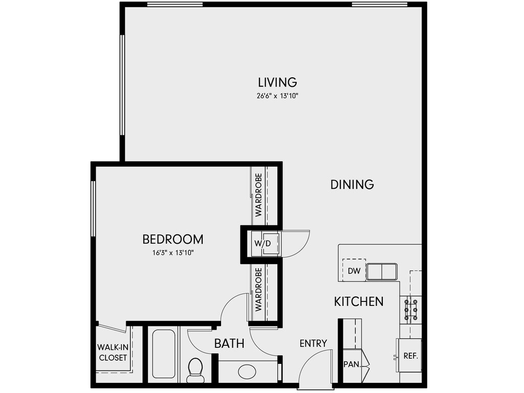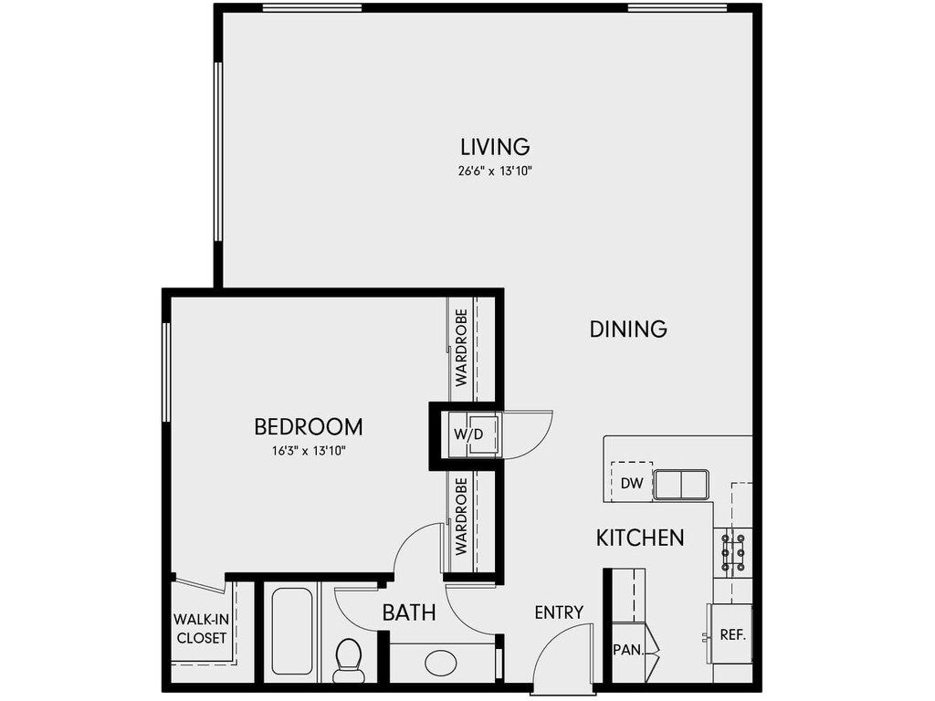 1 Dormitorio, 1 Baño, 780 pies²Disponible AhoraGalería del Modelo