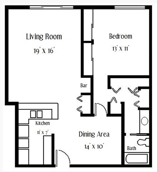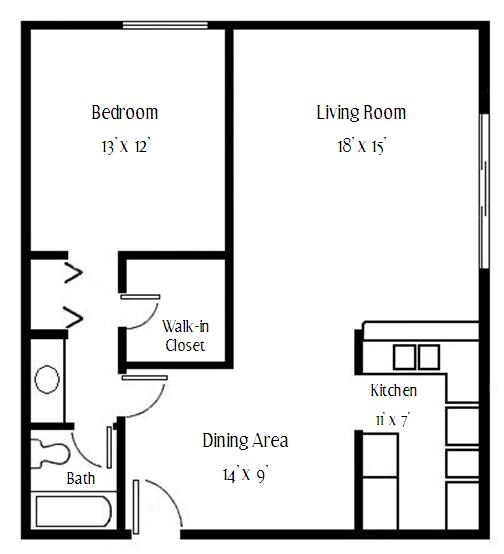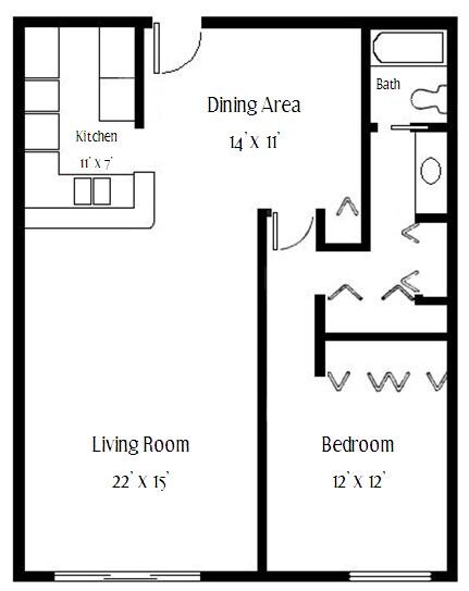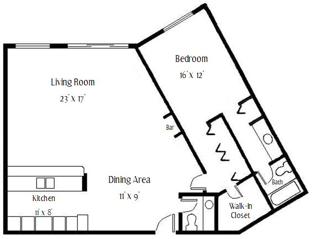 Estudio, 1 Baño, 708 pies²Galería del Modelo