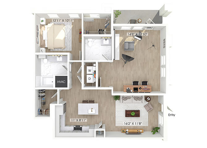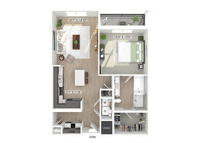 1 Dormitorio, 1 Baño, 713-750 pies²Disponible AhoraGalería del Modelo