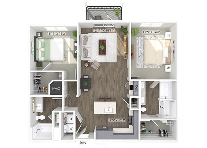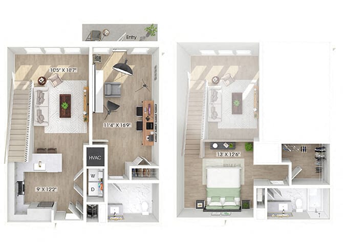 1 Dormitorio, 1 Baño, 731-776 pies²Disponible AhoraGalería del Modelo