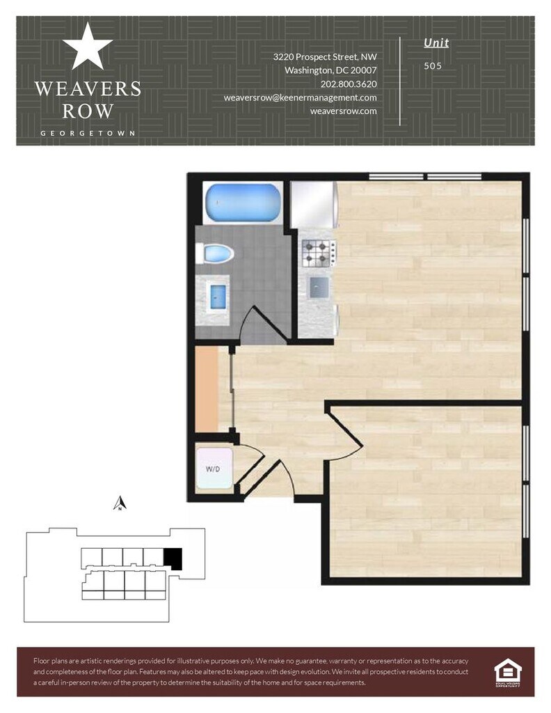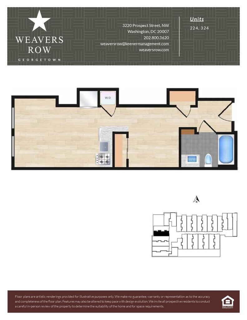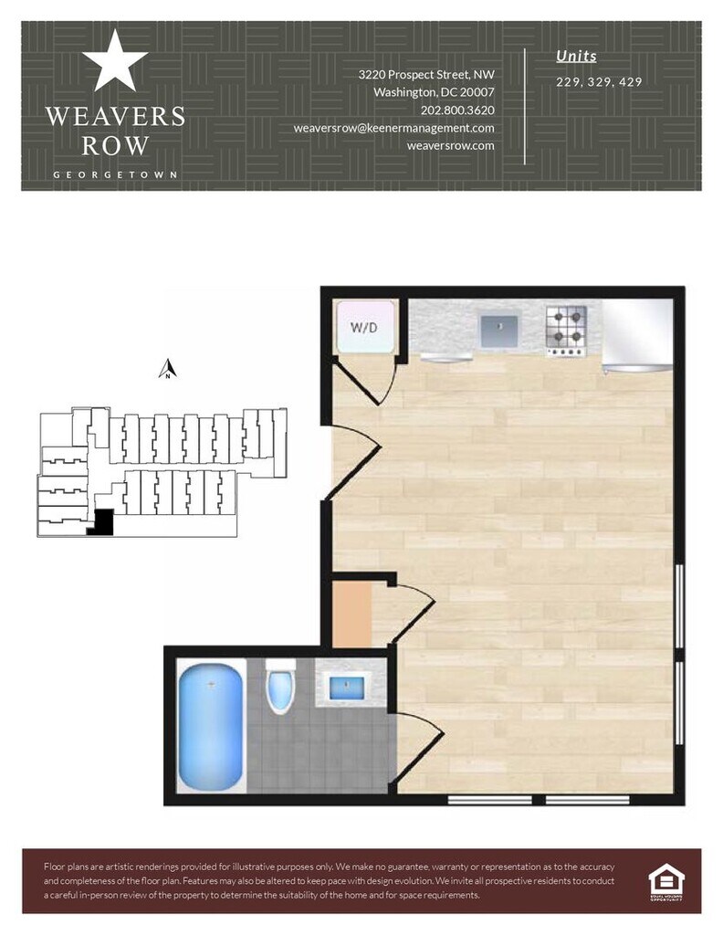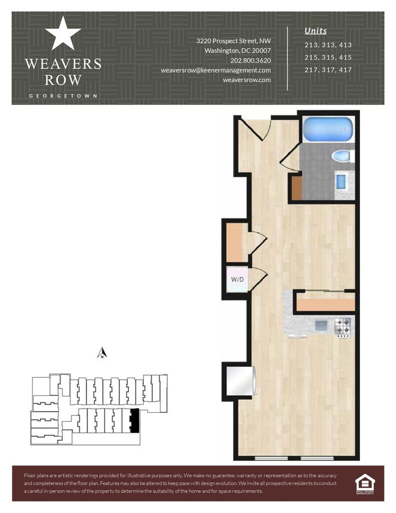 Weavers Row se encuentra en el Barrio Georgetown y el código postal 20007 de Washington, DC. Esta comunidad está gestionada profesionalmente por Keener Management