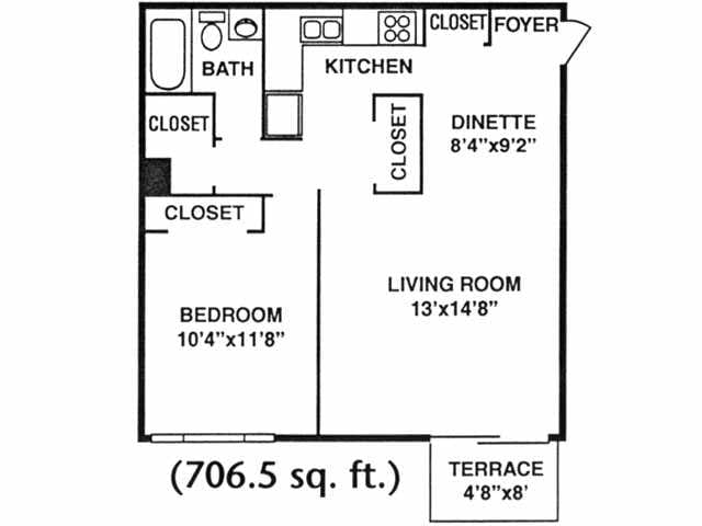 1 Dormitorio, 1 Baño, 707 pies²Disponible AhoraGalería del Modelo