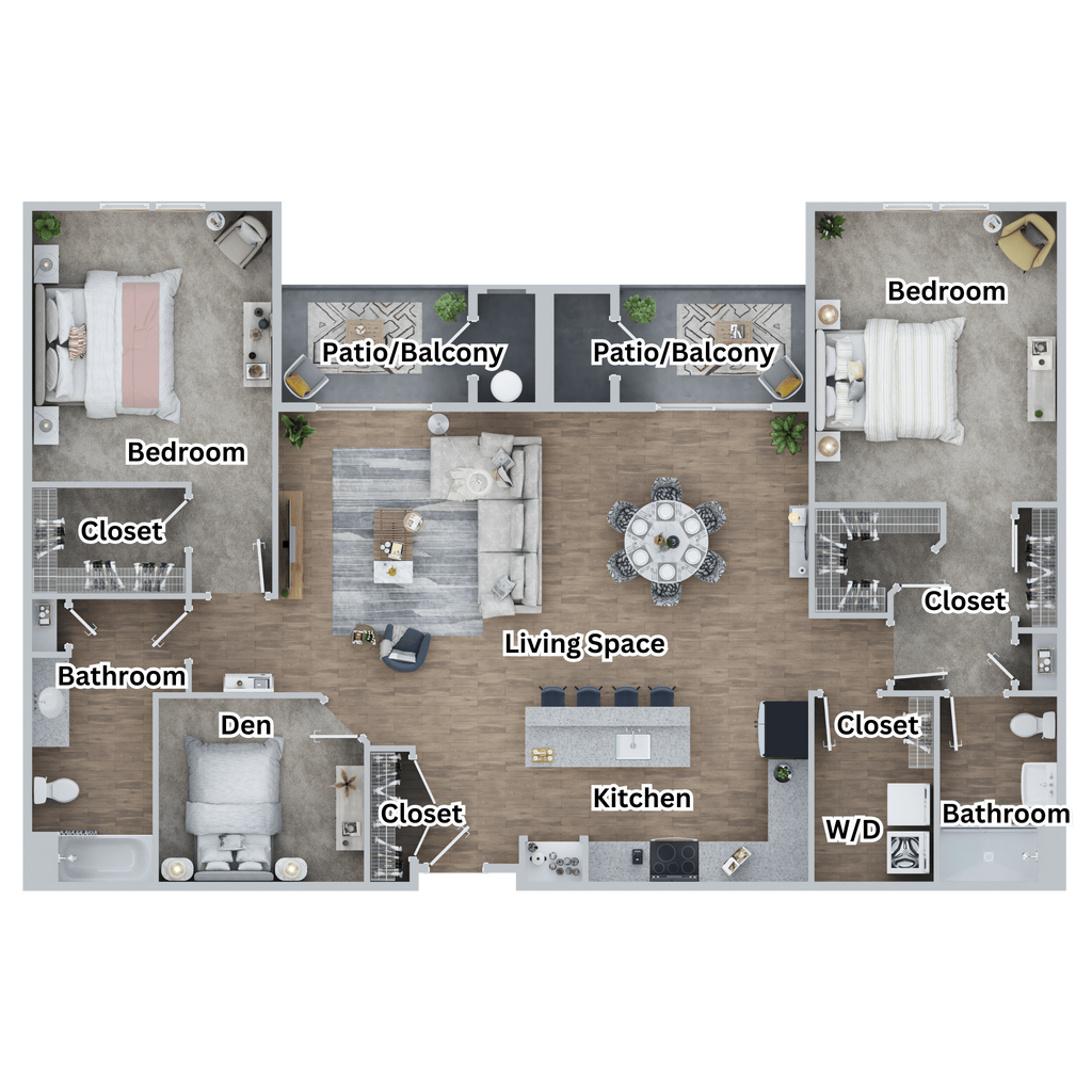 2 Dormitorios, 2 Baños, 1189-1248 pies²Precio Mensual TotalDisponible AhoraGalería del Modelo