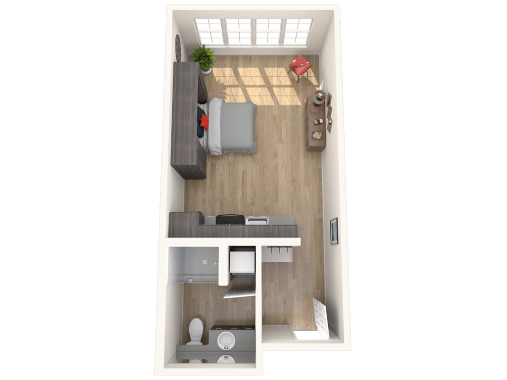 Studio - Imagen 5 Unidad de apartamento: 401Modelo de apartamento: Studio$1,450Estudio, 1 Baño, 525 sq ftDisponible AhoraStudio Large