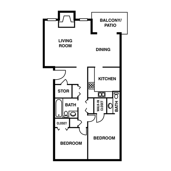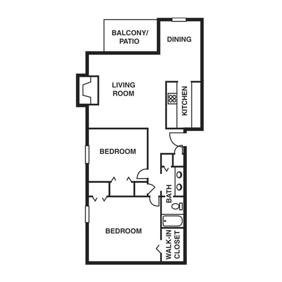 2 Dormitorios, 1 Baño, 1020 pies²Disponible Oct 31Galería del Modelo