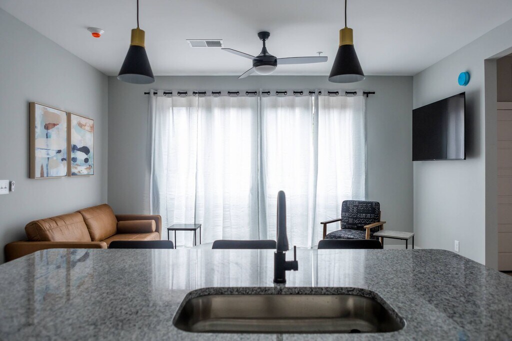 Our apartments are thoughtfully designed with high-end features and finishes. Step into your new home and be greeted by real wood cabinets that exude elegance and sophistication. The stainless-steel appliances in the kitchen add a modern touch, and the granite countertops provide a sleek and stylish workspace. You'll love the luxury vinyl flooring that combines durability and beauty, creating a warm and inviting atmosphere throughout your living space. Every bedroom in our community comes with its own private bathroom, ensuring your comfort and convenience. You'll have a personal retreat to relax and unwind after a long day. Our shared common areas, including a furnished living room with a smart TV, provide the perfect space to socialize, entertain guests, or catch up on your favorite shows. We take care of all the essential utilities so you can focus on enjoying your new home. All utilities, including fiber Internet and electric, are included in your rent, eliminating the hassle of managing multiple bills. Additionally, our property is a non-smoking environment, ensuring a clean and healthy living environment for all residents.