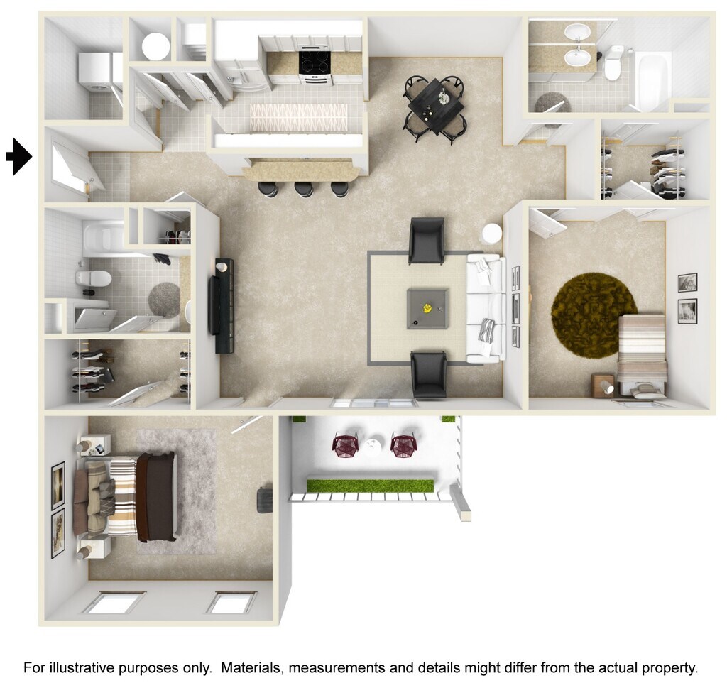 2 Dormitorios, 2 Baños, 1208-1222 pies²Disponible AhoraGalería del Modelo