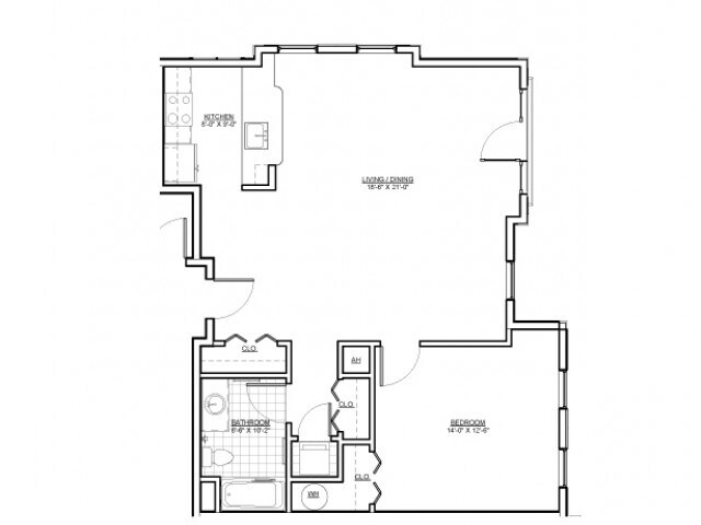 Modelo de apartamento: One Bedroom B$2,4601 Dormitorio, 1 Baño, 675 sq ftNo Disponible![]()