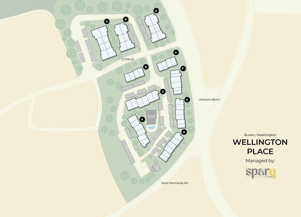 Wellington Place se encuentra en el Barrio Normandy Park y el código postal 98148 de Burien, WA.