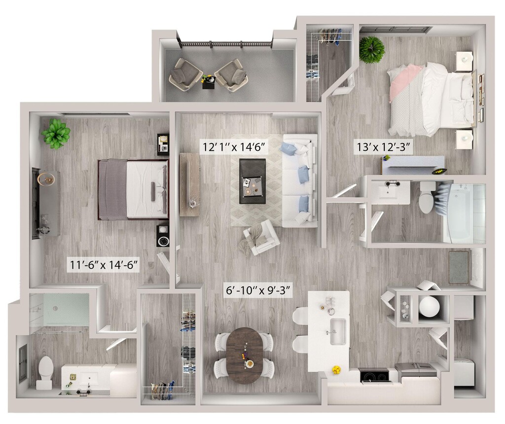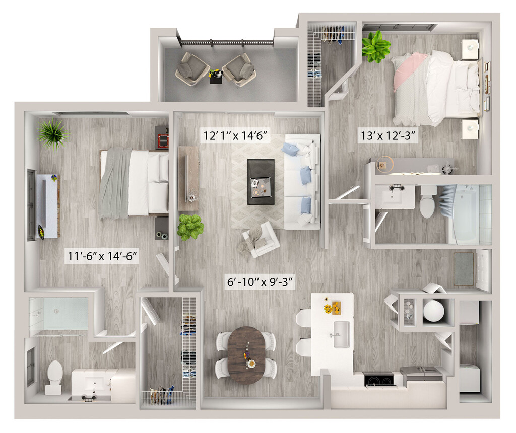2 Dormitorios, 2 Baños, 1269 pies²Disponible January 28, 2026Galería del Modelo