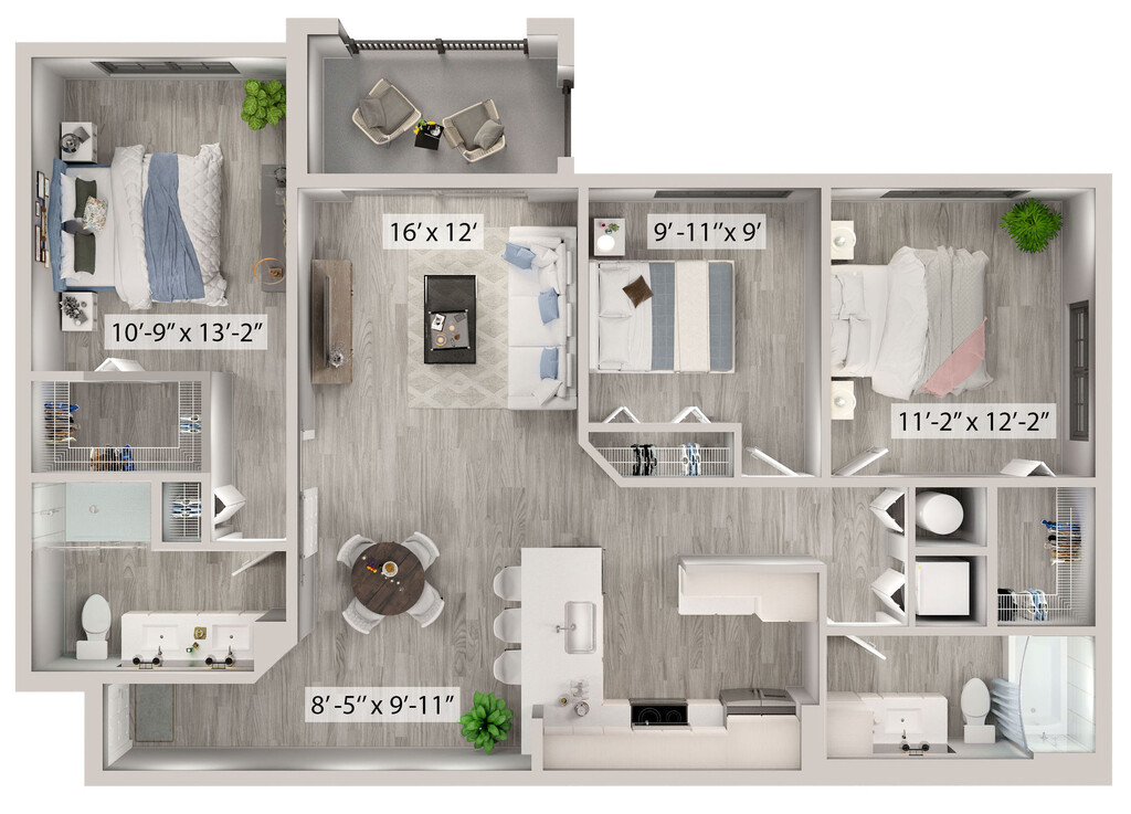 Modelo de apartamento: AuroraDesde $2,5022 Dormitorios, 2 Baños, 1097 sq ftDisponible Ahora![]()