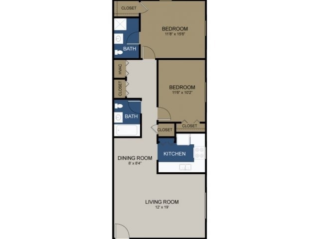 Modelo de apartamento: StraffordDesde $1,7402 Dormitorios, 1 Baño, 825 sq ftDisponible Ahora![]()