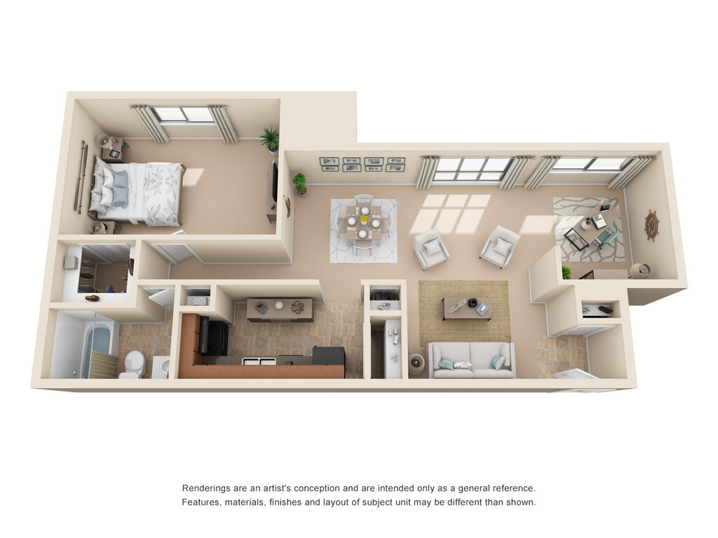 Modelo de apartamento: The Lily1 Dormitorio, 1 Baño, 776 sq ftNo Disponible![]()