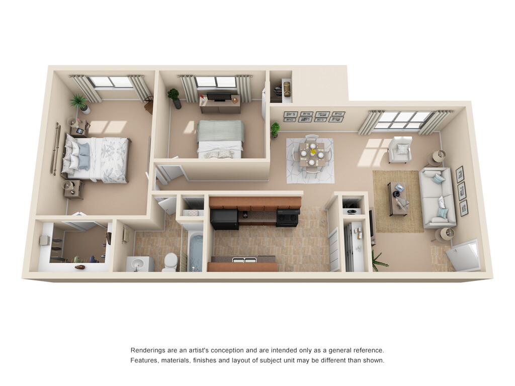 2 Dormitorios, 1 Baño, 926 pies²Disponible AhoraGalería del Modelo
