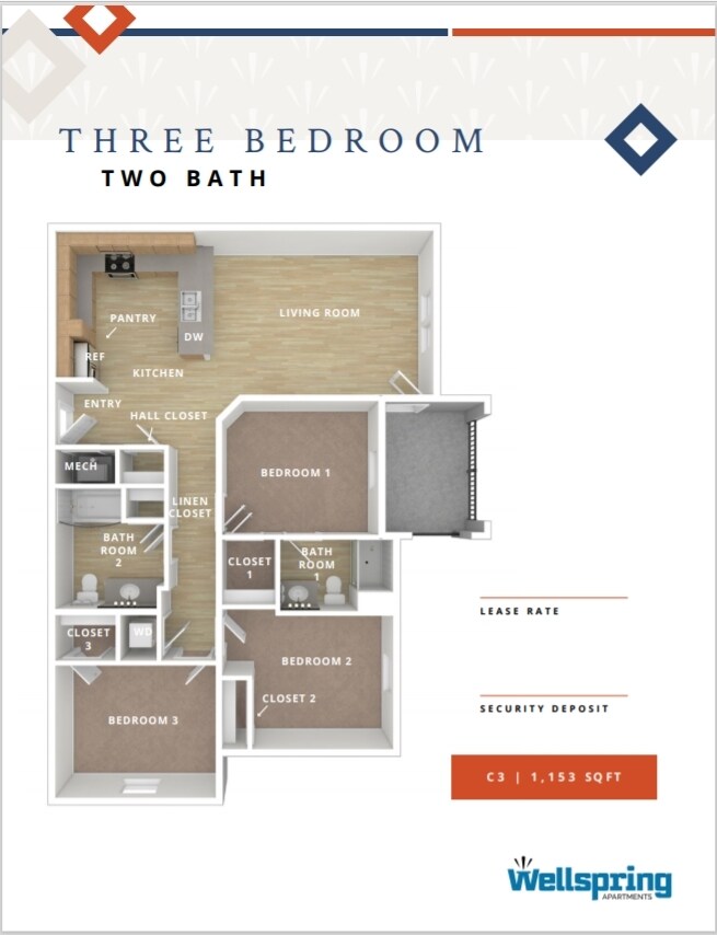 Llámenos hoy para conocer las opciones de precio de 1 dormitorios a 3 dormitorios en Wellspring Apartments