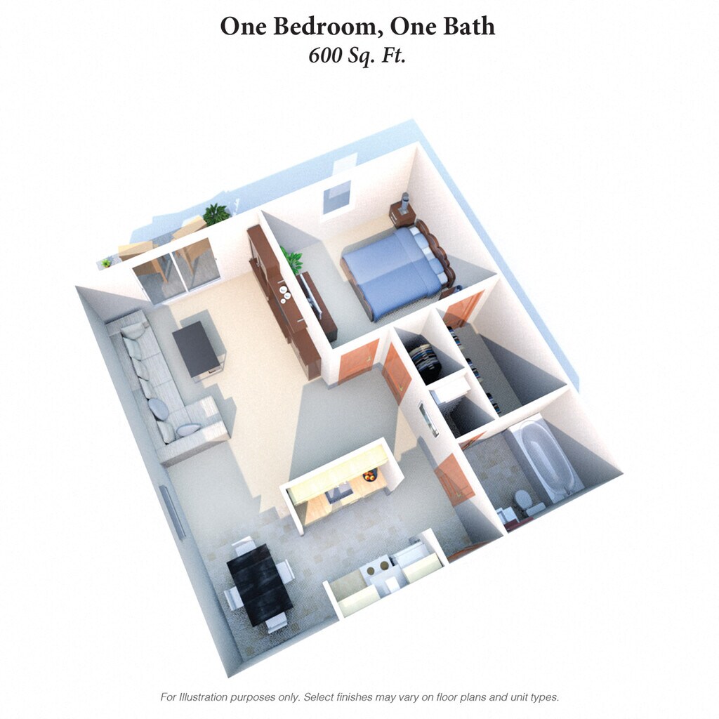 1 Dormitorio, 1 Baño, 600 pies²Disponible Nov 7Galería del Modelo