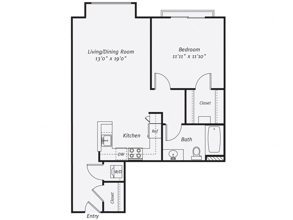 1 Dormitorio, 1 Baño, 784 pies²Disponible AhoraGalería del Modelo