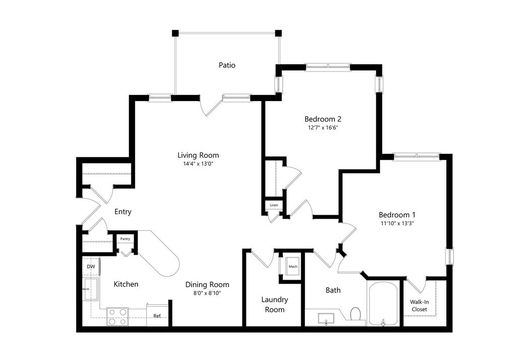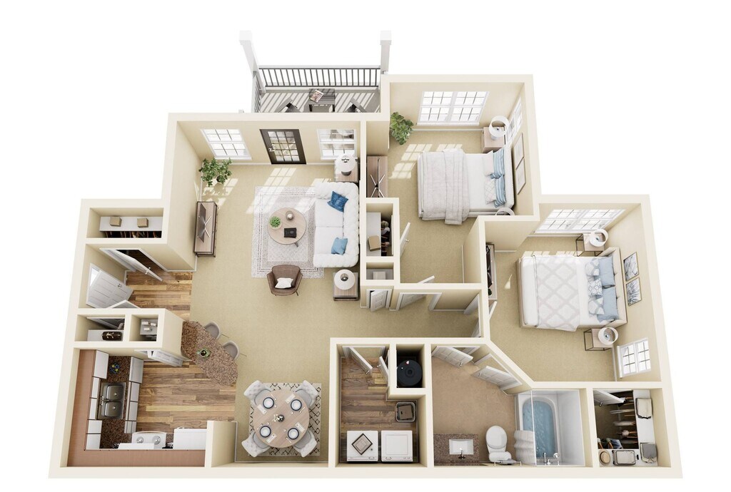 2 Dormitorios, 1 Baño, 1090 pies²Disponible AhoraGalería del Modelo