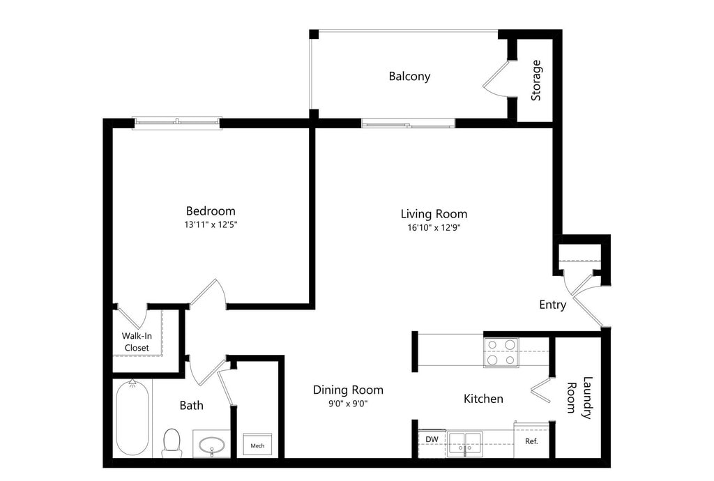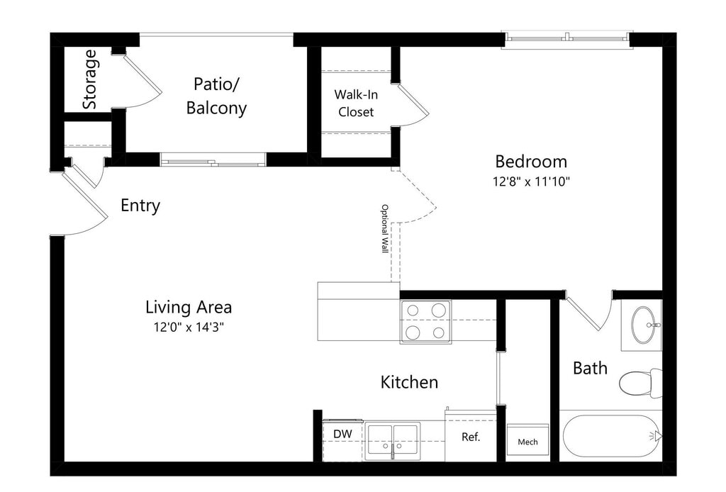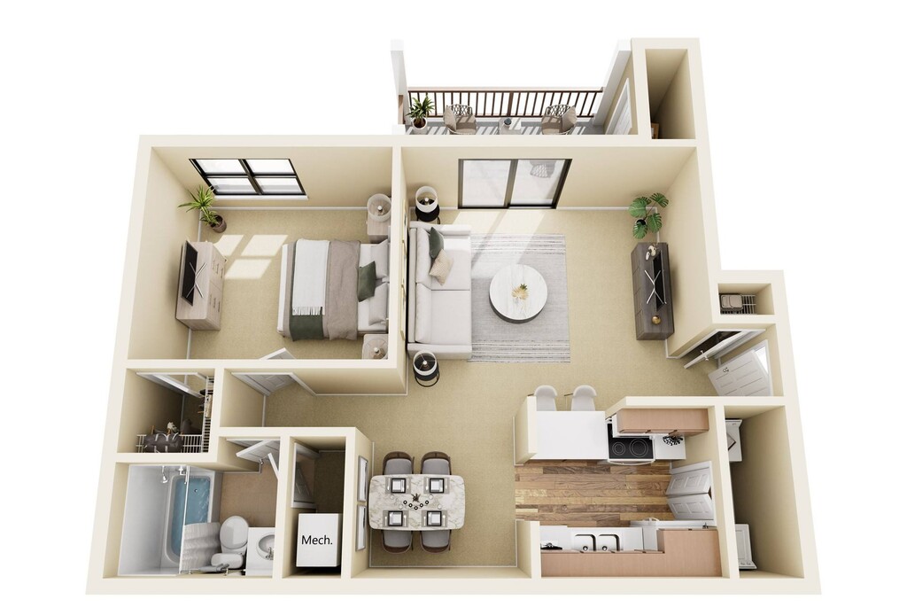1 Dormitorio, 1 Baño, 806 pies²Disponible AhoraEl más grandeEsta opción tiene las unidades más grandes para este modeloGalería del Modelo