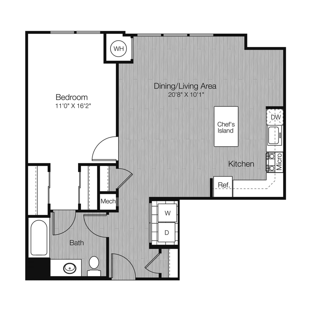 1 Dormitorio, 1 Baño, 857 pies²Disponible Jul 16El más grandeEsta opción tiene las unidades más grandes para este modeloGalería del Modelo