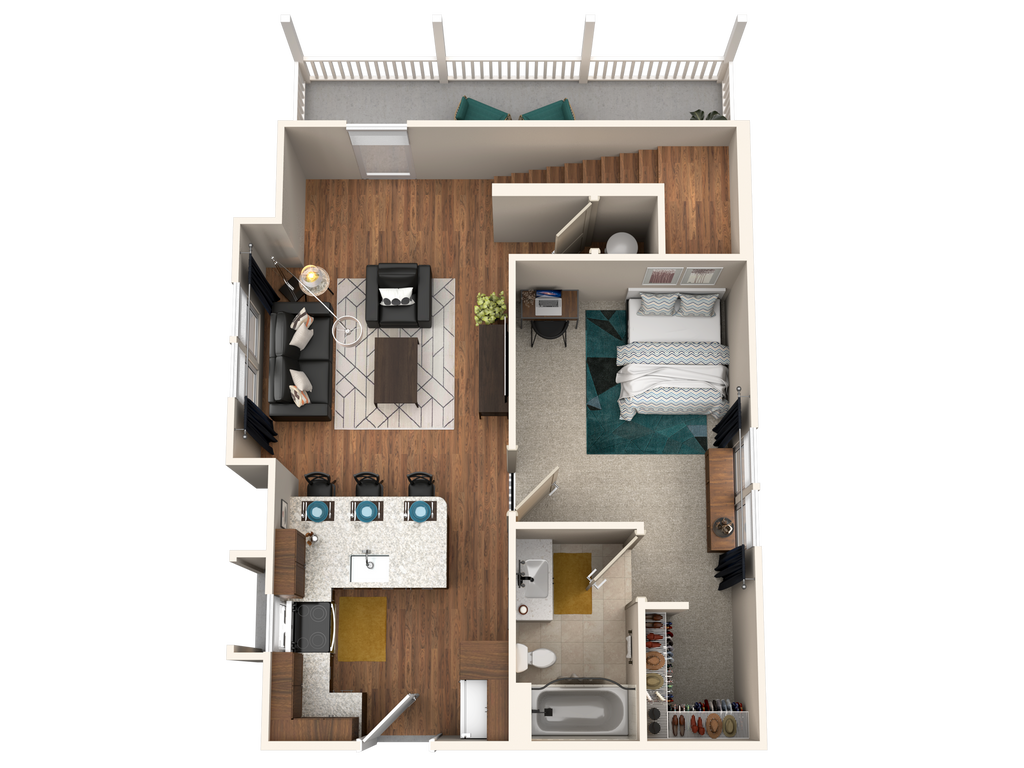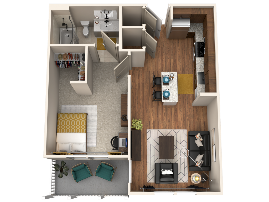 1 Dormitorio, 1 Baño, 586 pies²Disponible Aug 14Galería del Modelo