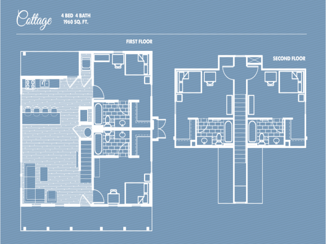3/3 Cottage - Plano 1 Unidad de apartamento: Private PremiumModelo de apartamento: 3/3 Cottage3 Dormitorios, 3 Baños, 1404 sq ftDisponible August 14, 20264 Dormitorios