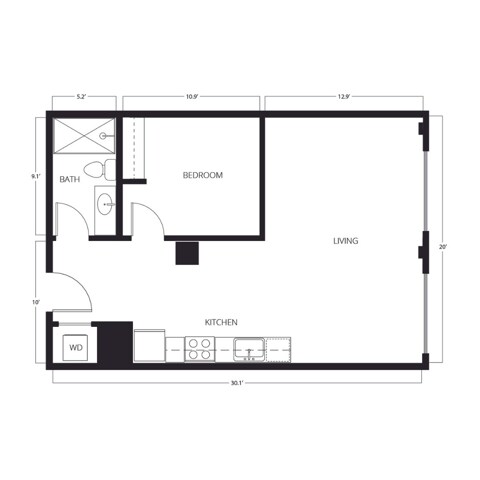 Modelo de apartamento: S17-WYDesde $1,236Estudio, 1 Baño, 420-455 sq ftDisponible February 26, 2026Los planos son representaciones artísticas. Todas las dimensiones son aproximadas. El producto y las especificaciones reales pueden variar en tamaño o detalle. No todas las características están disponibles en cada vivienda en alquiler. Por favor, consulta con un representante para obtener más detalles.
