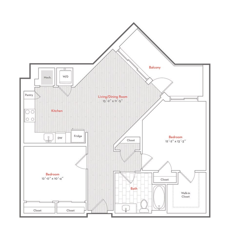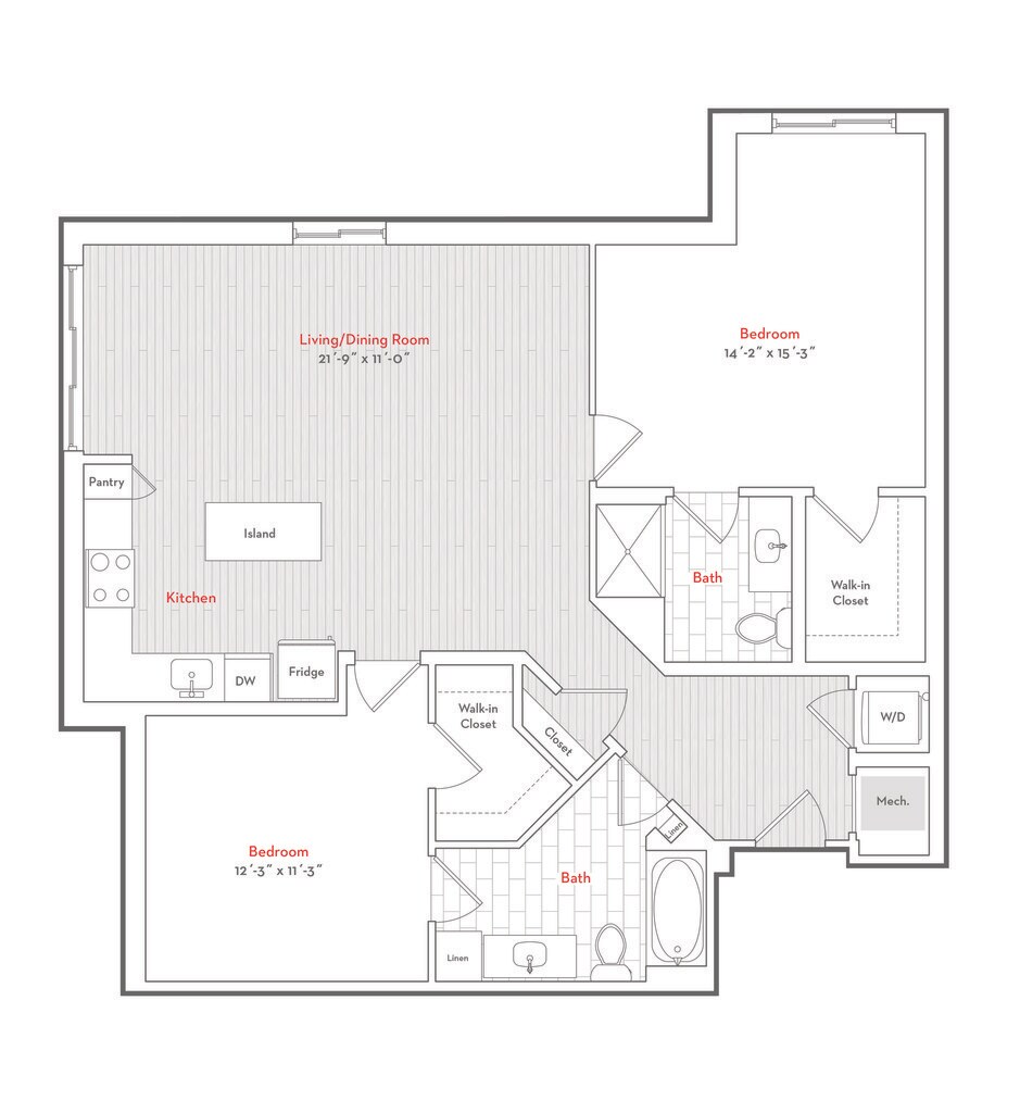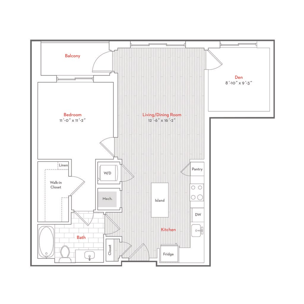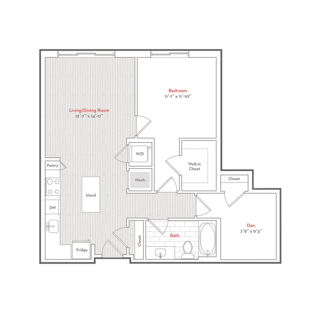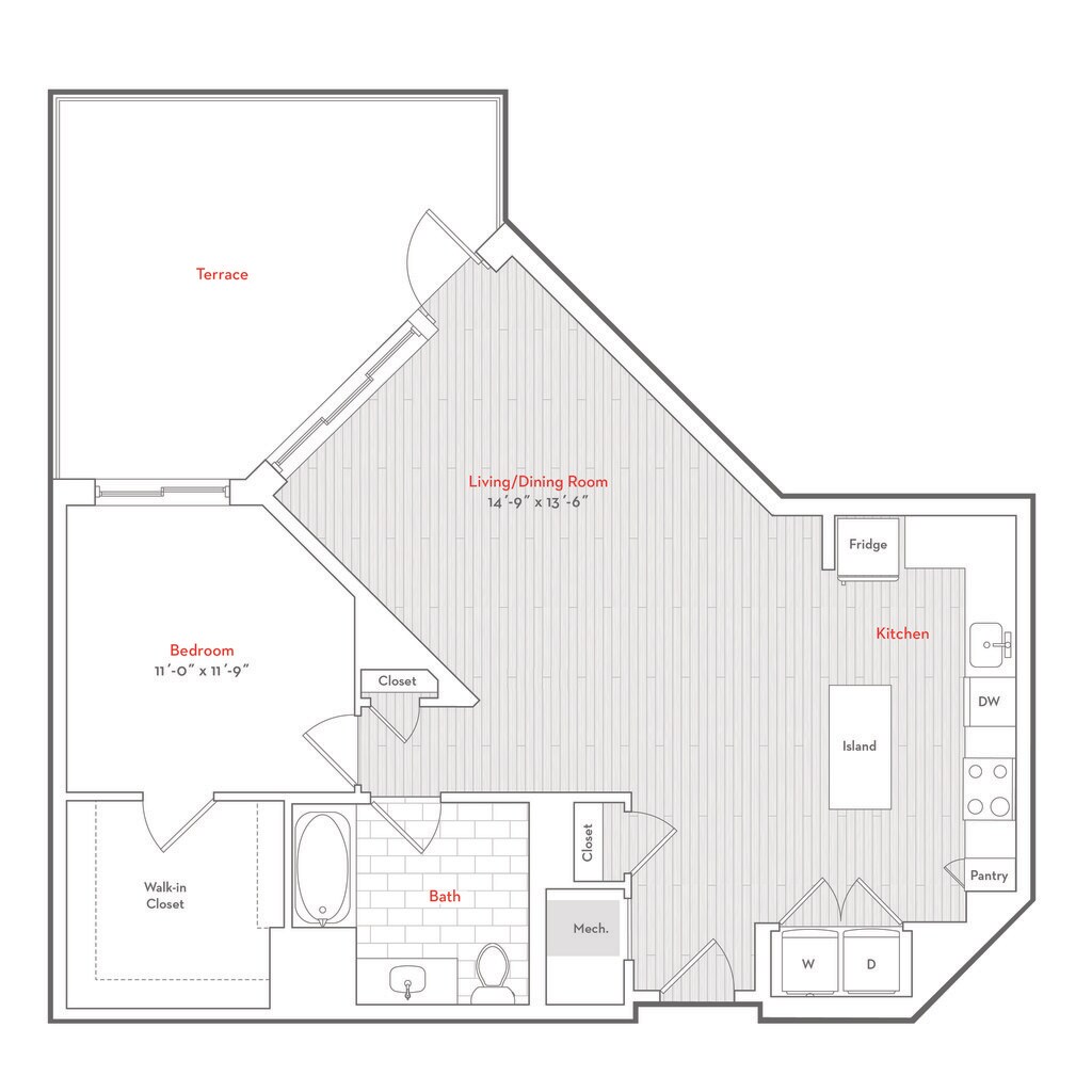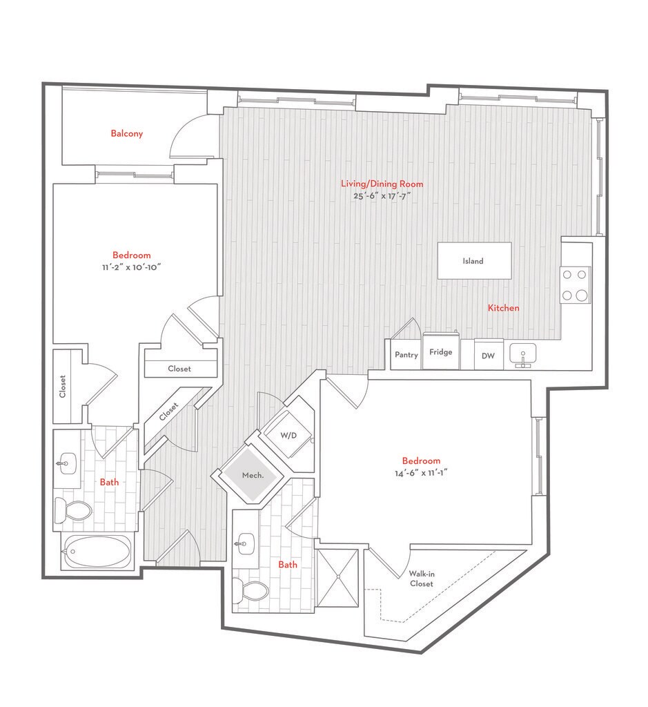 Modelo de apartamento: 1 Bed 1 Bath-D1Desde $2,3751 Dormitorio, 1 Baño, 717 sq ftDisponible Ahora![]()