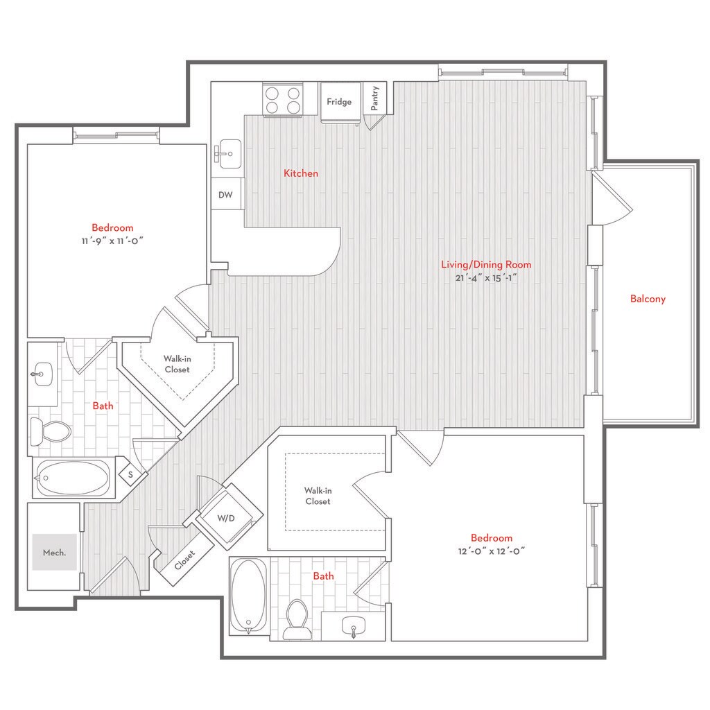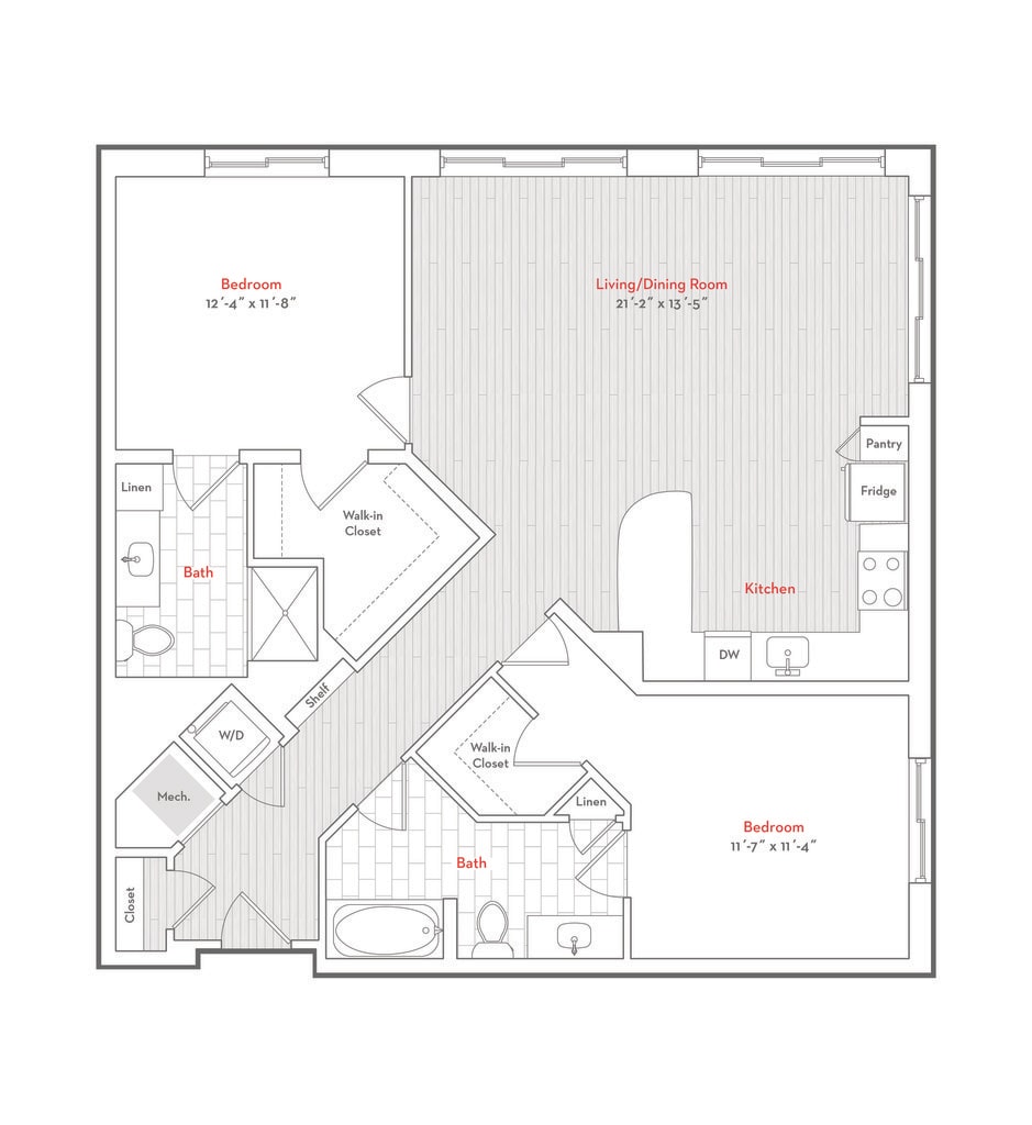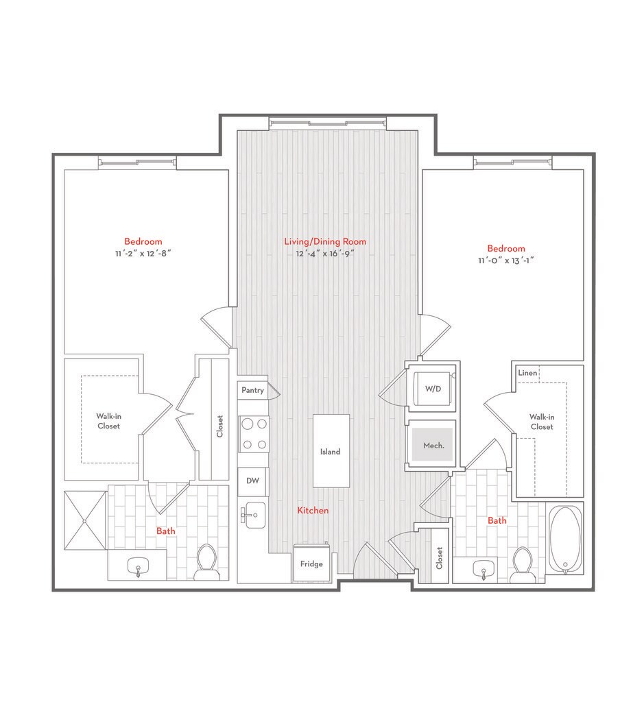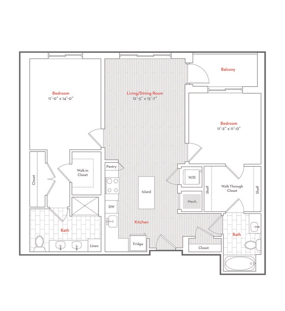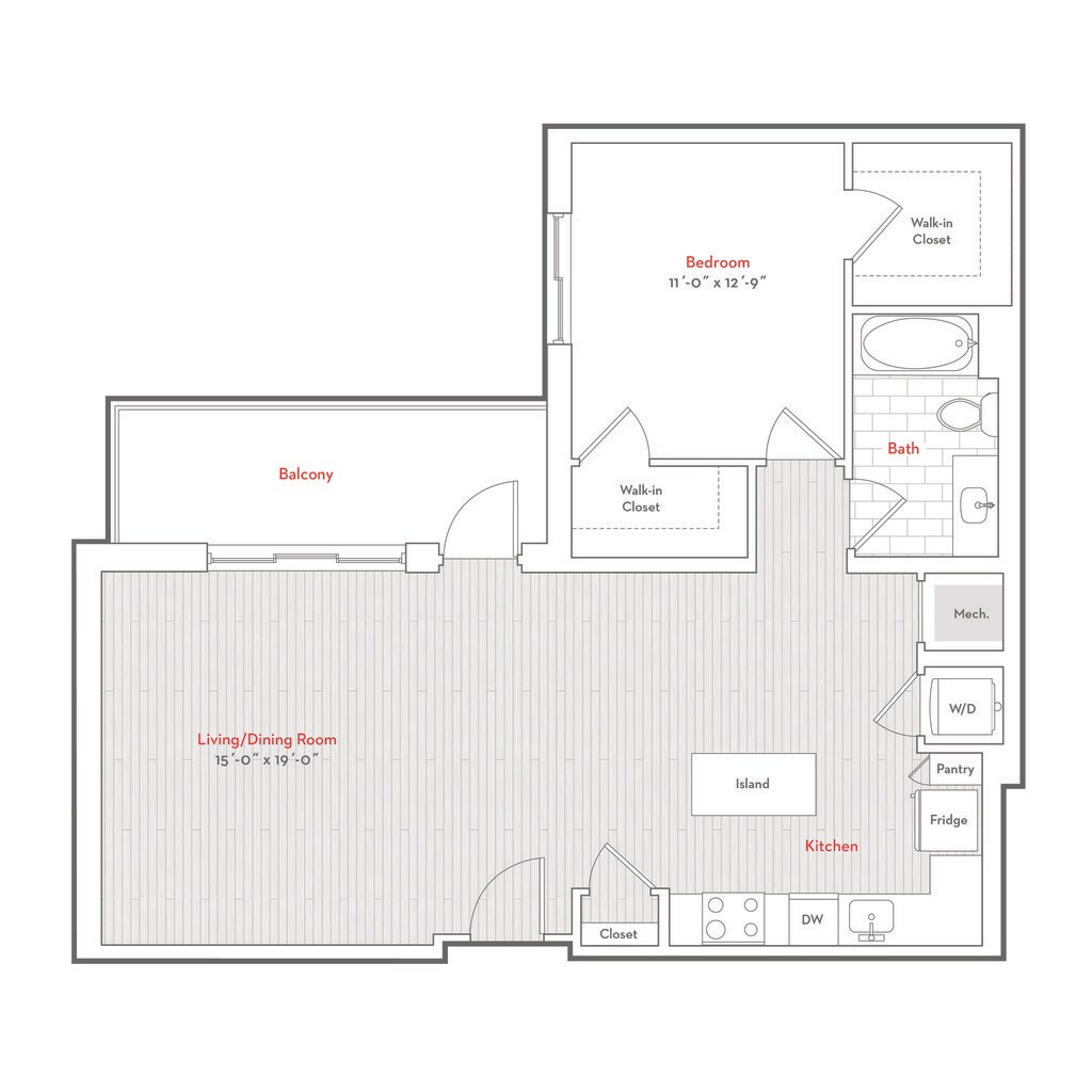 Modelo de apartamento: 1 Bed 1 Bath-D1Desde $2,3751 Dormitorio, 1 Baño, 717 sq ftDisponible Ahora![]()