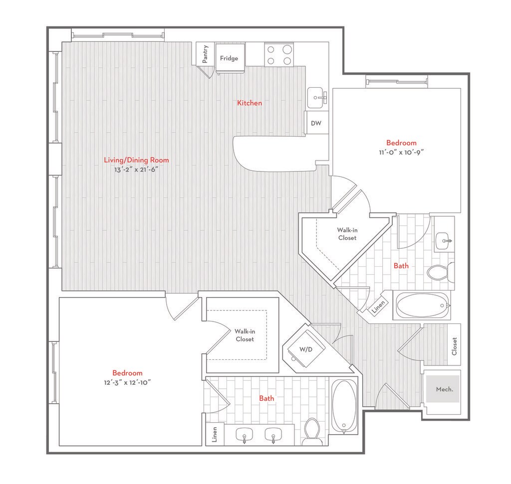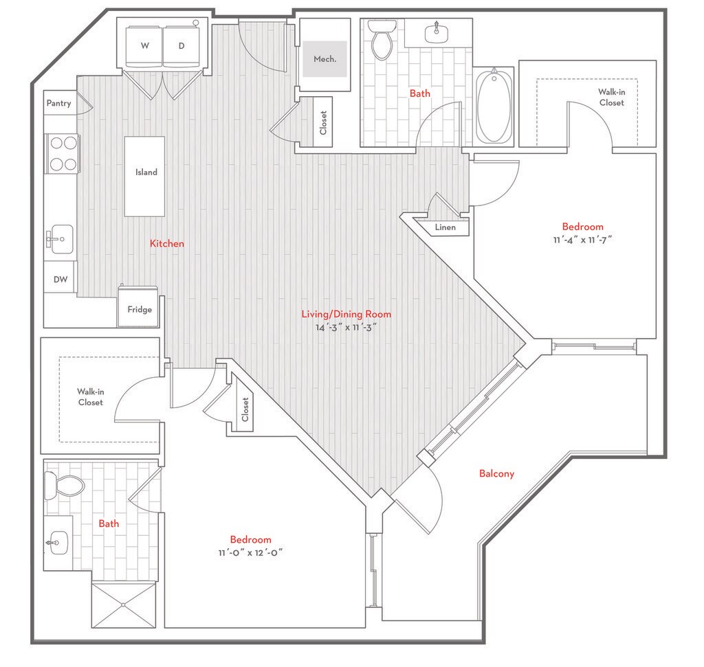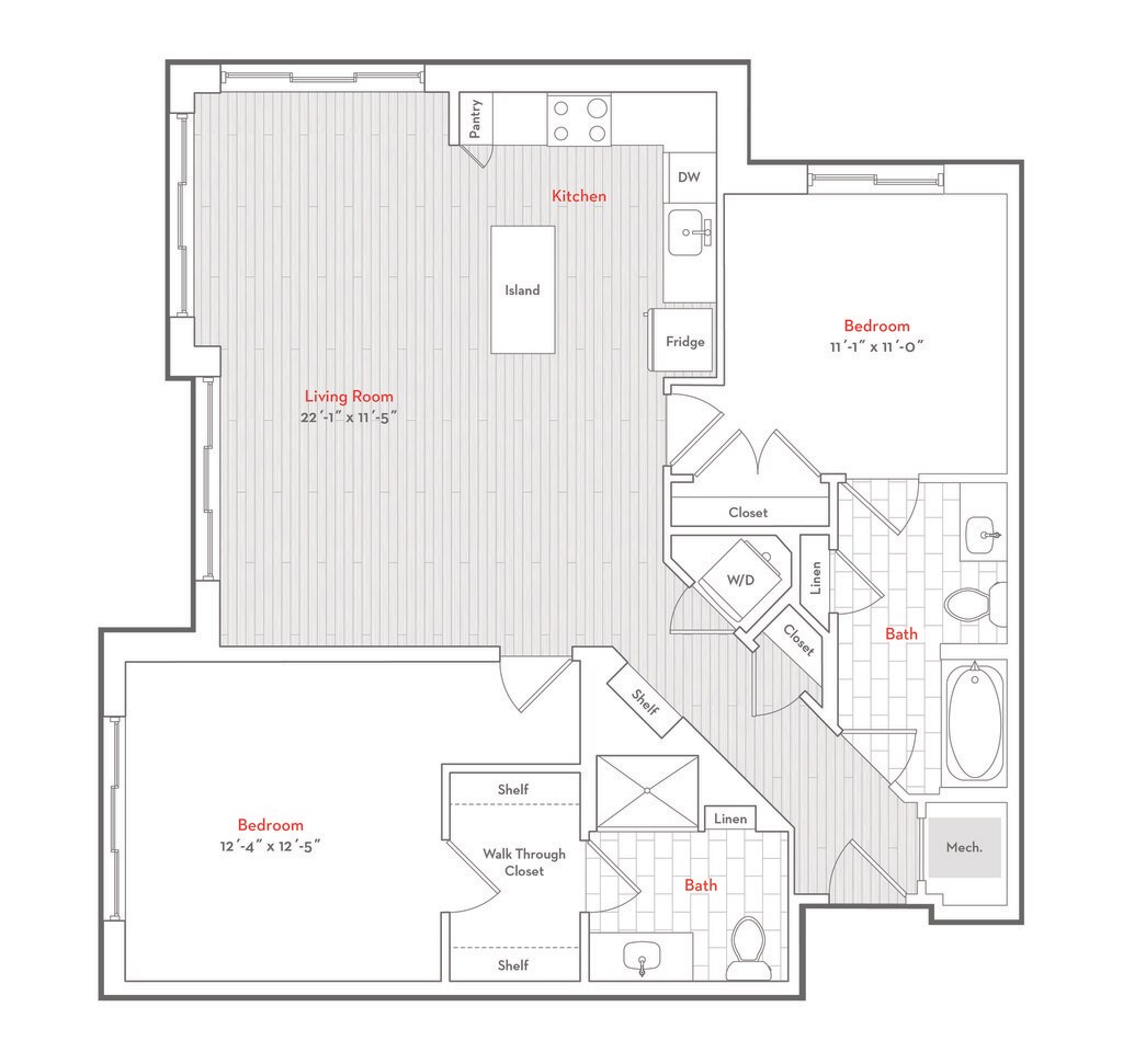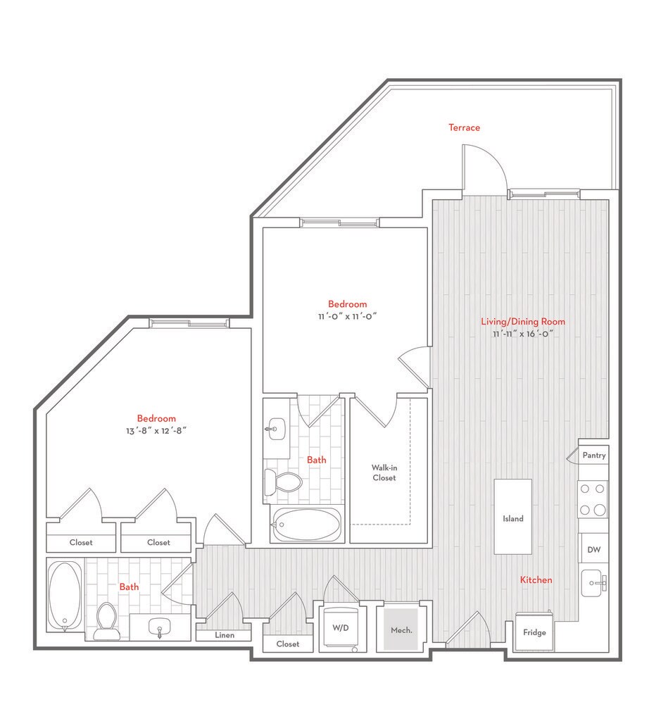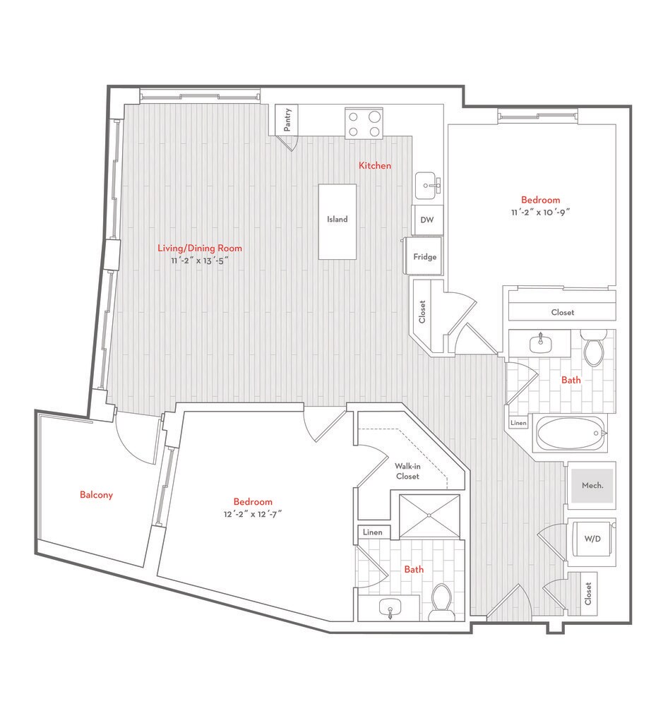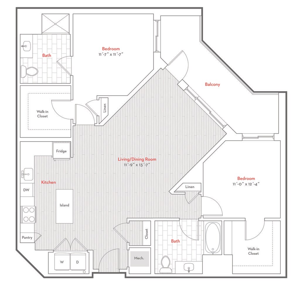 Modelo de apartamento: 1 Bed 1 Bath-D1Desde $2,3751 Dormitorio, 1 Baño, 717 sq ftDisponible Ahora![]()