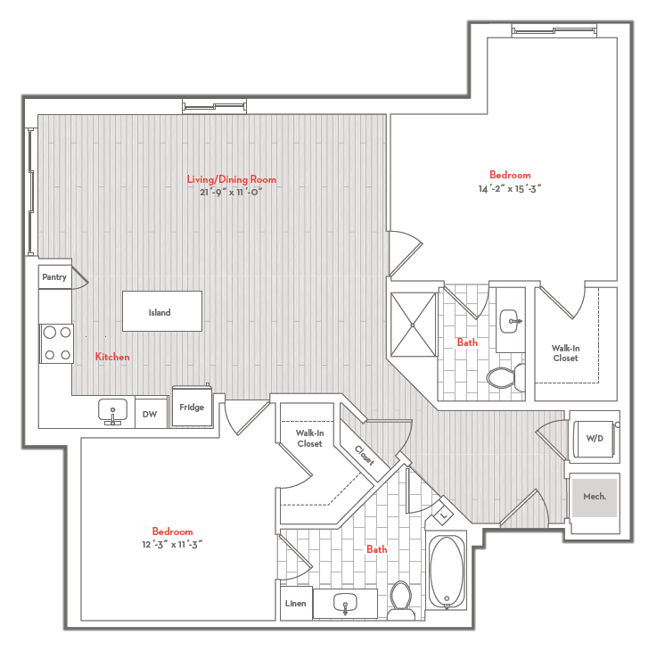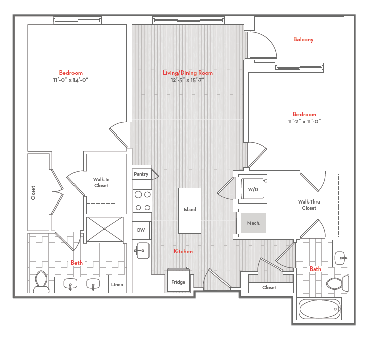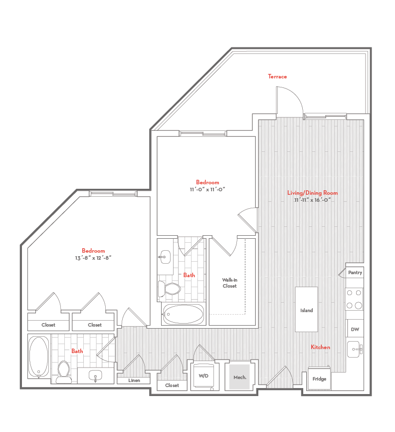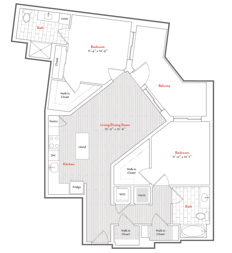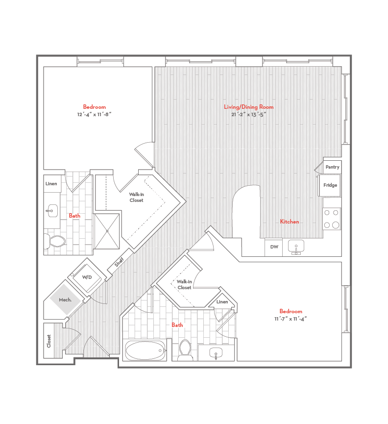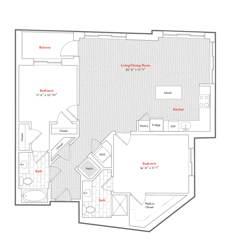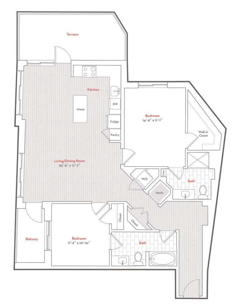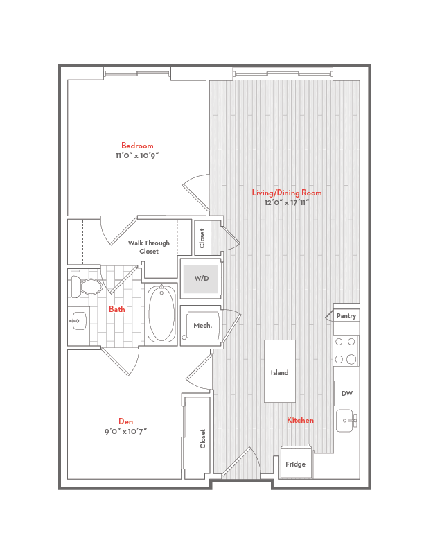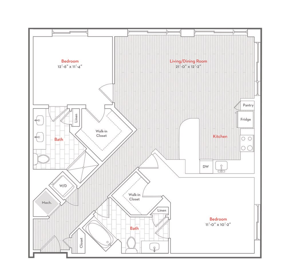 Modelo de apartamento: 1 Bed 1 Bath-D1Desde $2,3751 Dormitorio, 1 Baño, 717 sq ftDisponible Ahora![]()