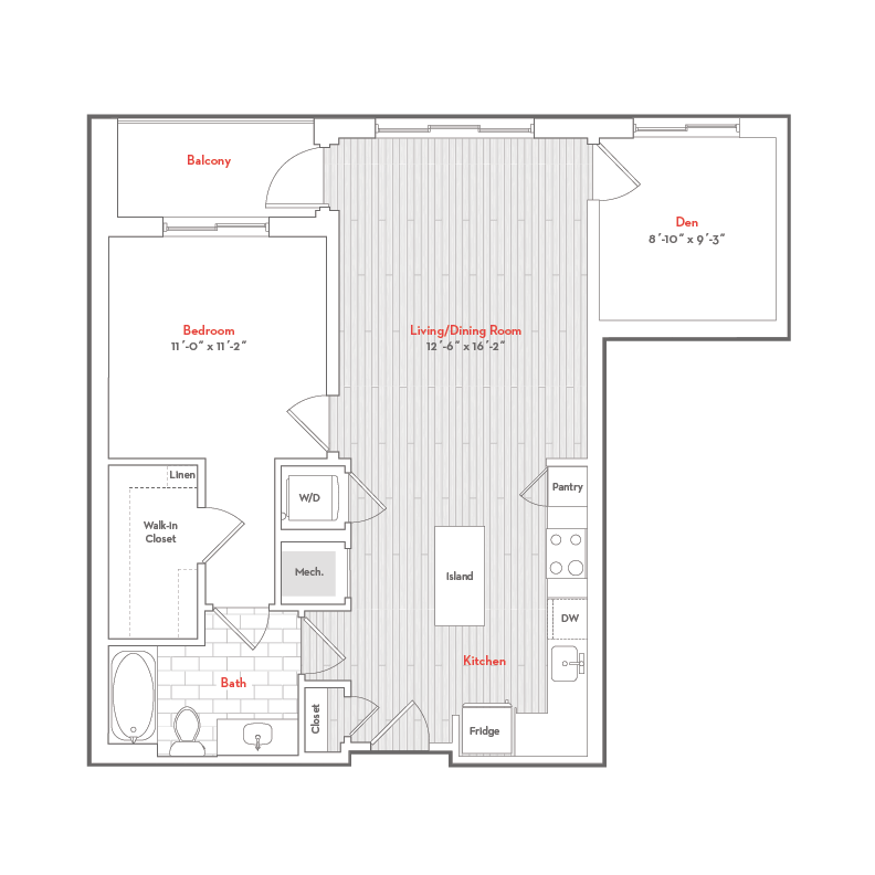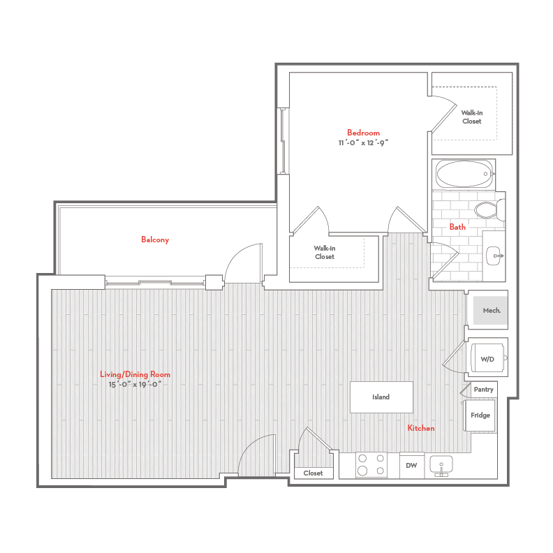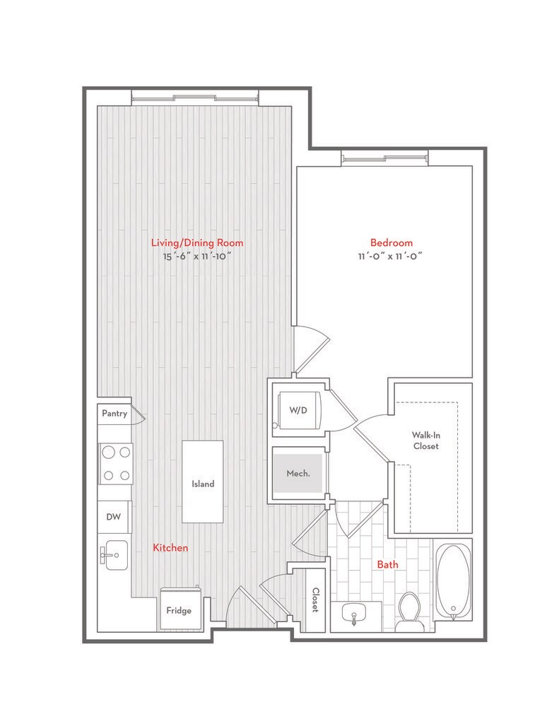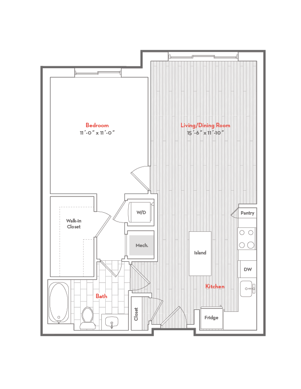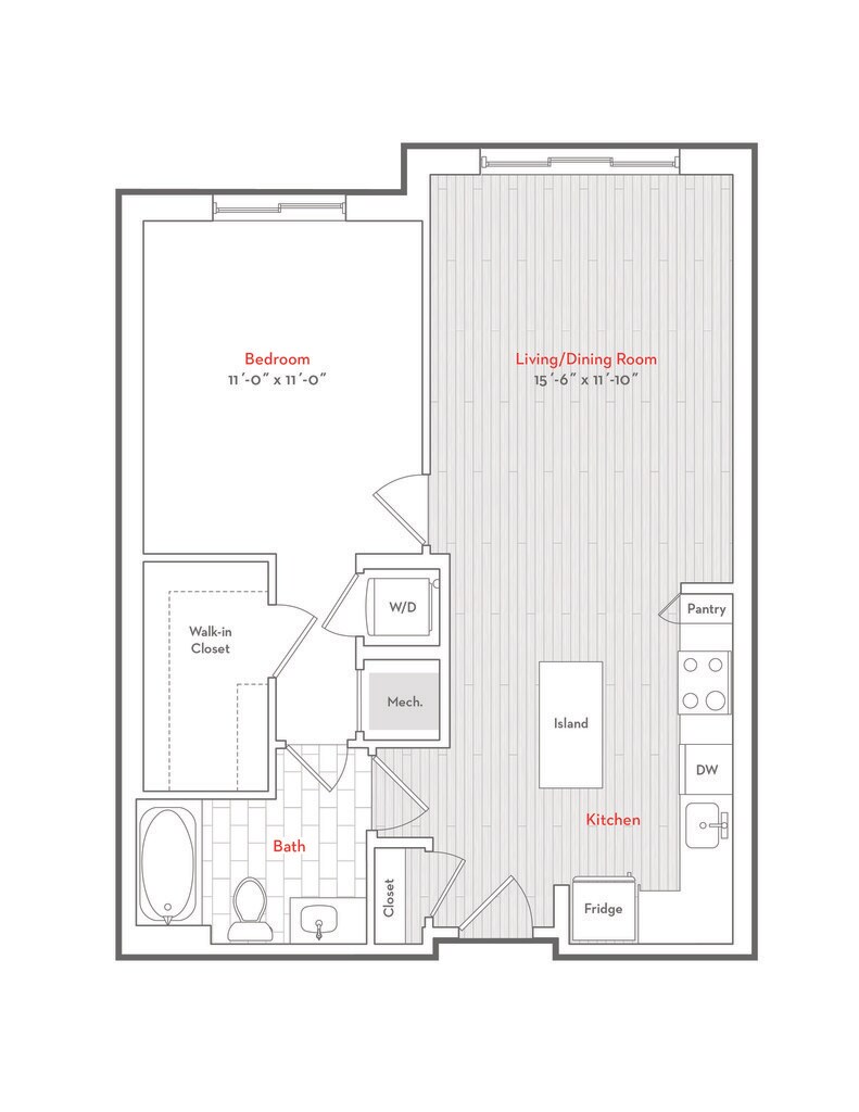 1 Dormitorio, 1 Baño, 717 pies²Disponible AhoraGalería del Modelo