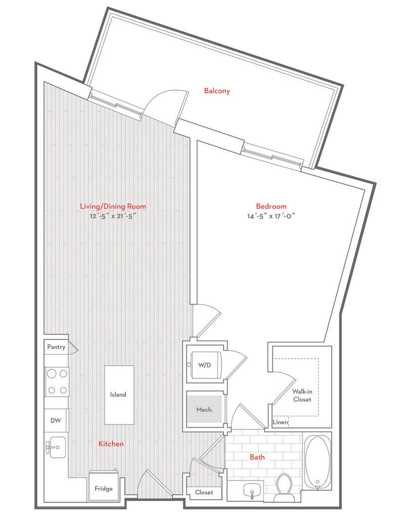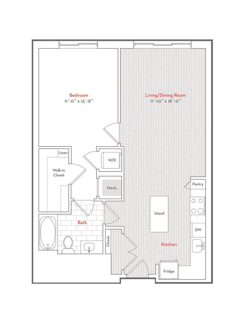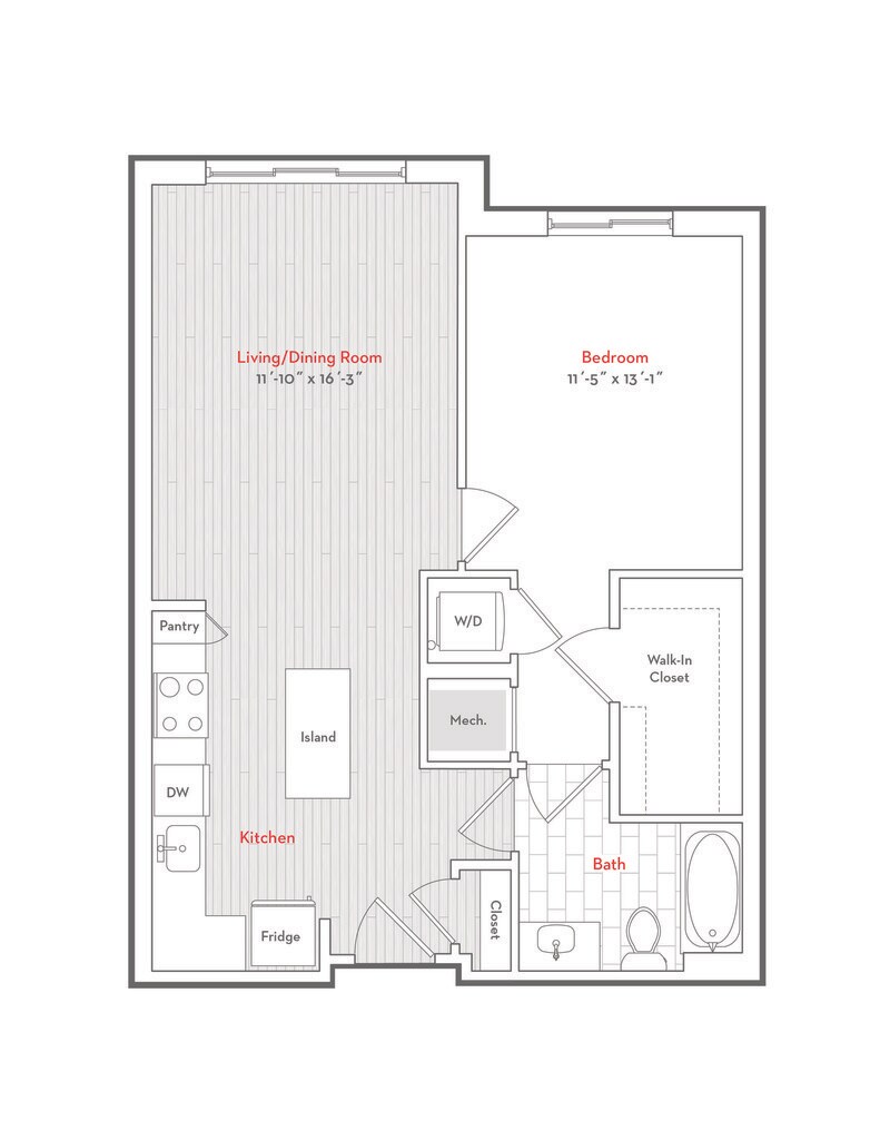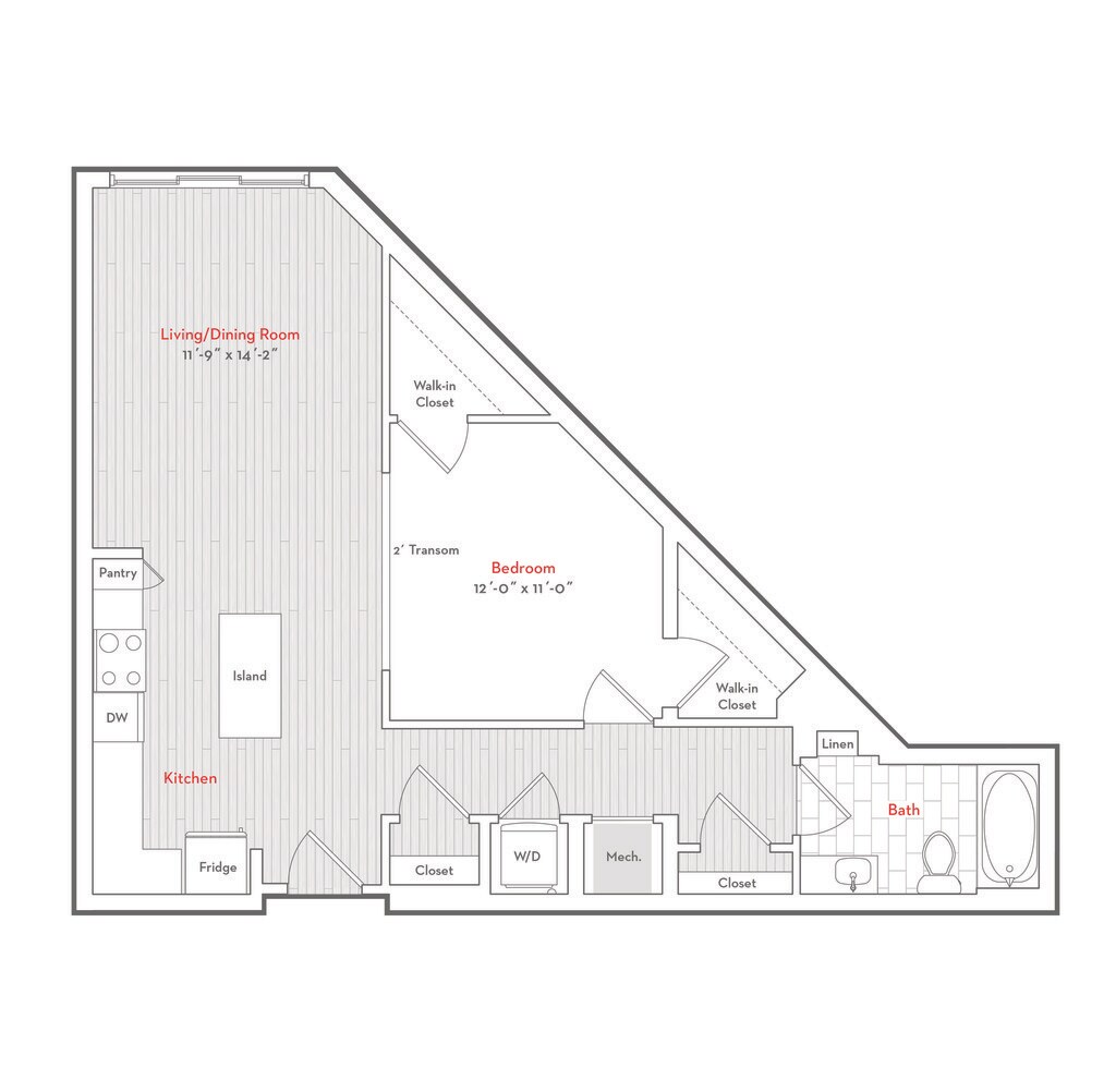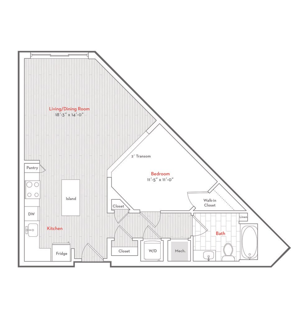 Unidad: 431 - Imagen 1 Unidad de apartamento: 231Modelo de apartamento: 1 Bed 1 Bath-D1$2,4901 Dormitorio, 1 Baño, 717 sq ftDisponible Ahora![]()