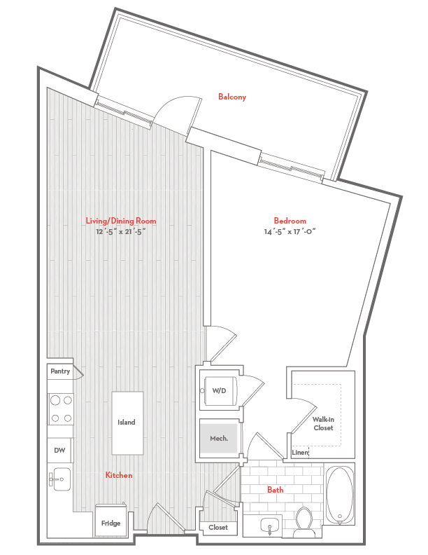 1 Bed 1 Bath-D1 - Plano 2 Unidad de apartamento: 431Modelo de apartamento: 1 Bed 1 Bath-D1$2,3751 Dormitorio, 1 Baño, 717 sq ftDisponible Ahora![]()