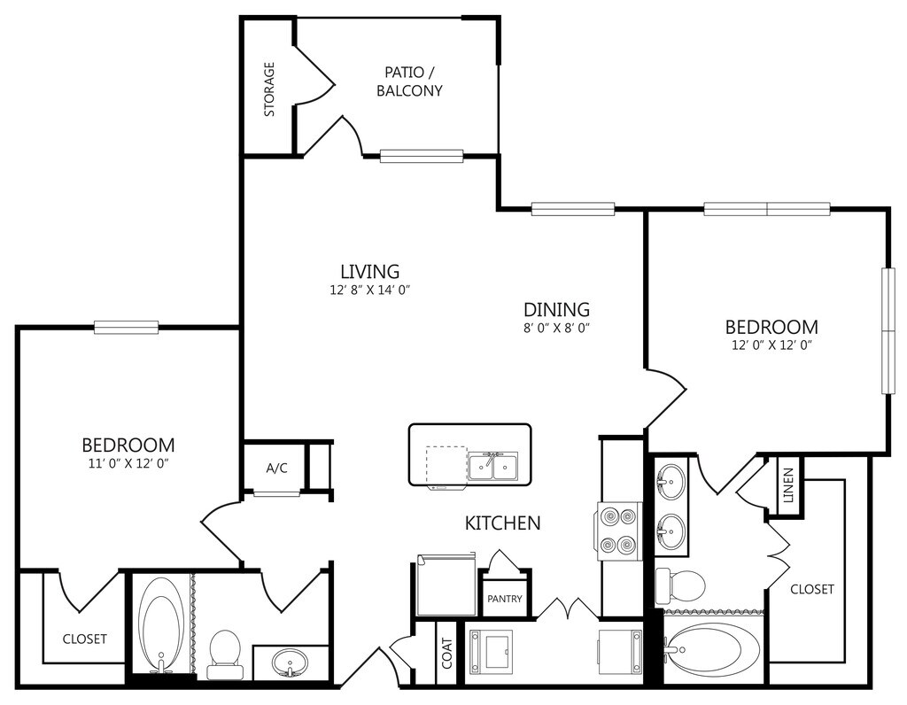 Modelo de apartamento: A2PDesde $1,1001 Dormitorio, 1 Baño, 796 sq ftDisponible Ahora![]()
