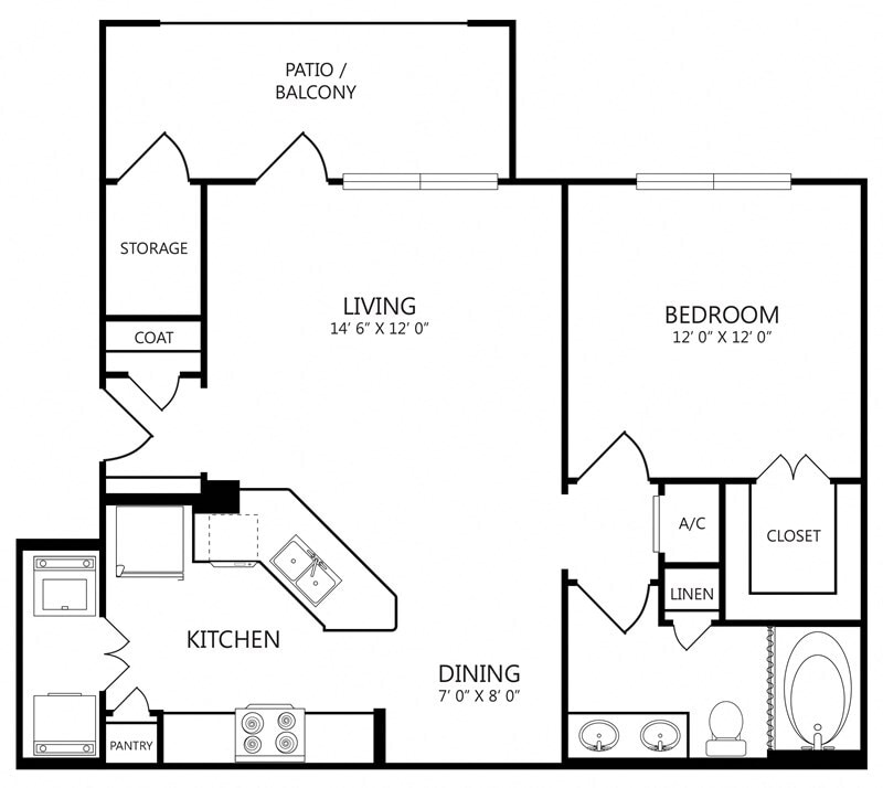 Modelo de apartamento: A1Desde $1,1161 Dormitorio, 1 Baño, 723 sq ftDisponible AhoraPlanosFotos![]()