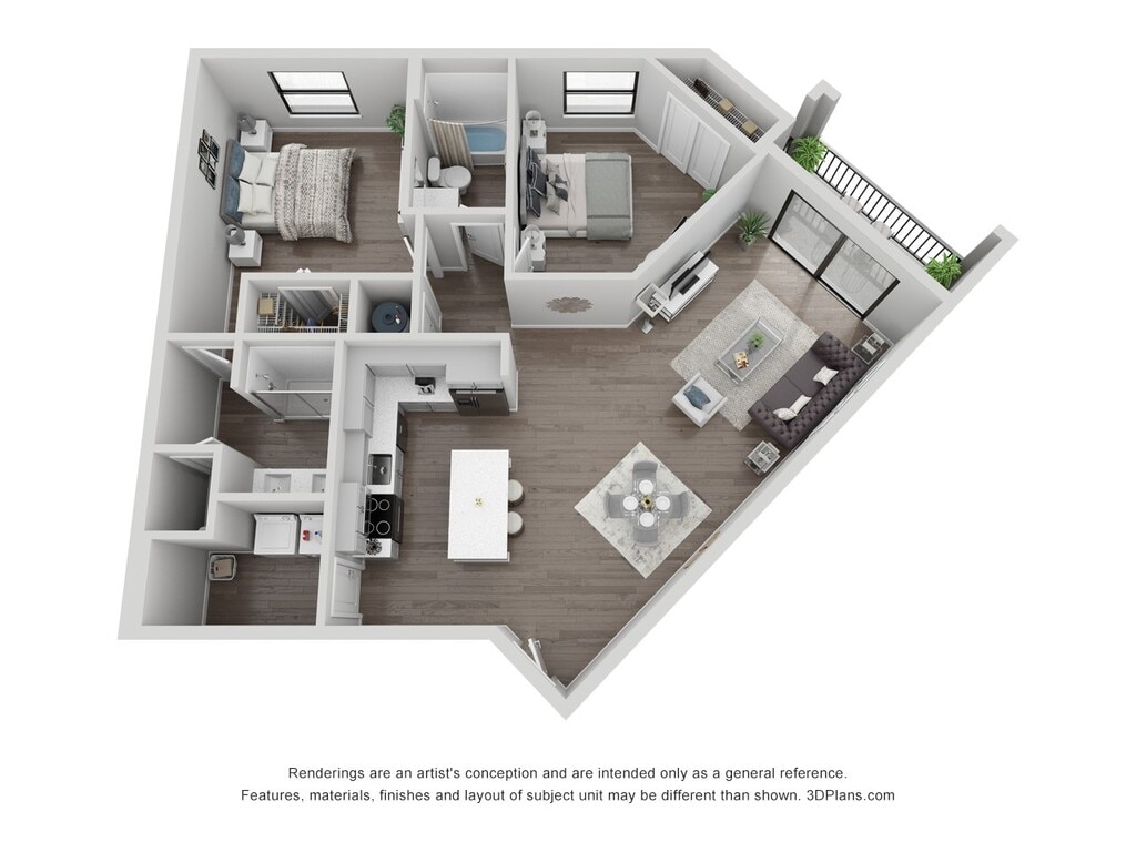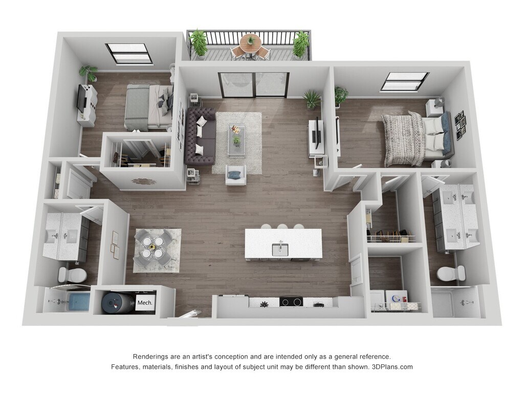Modelo de apartamento: B2Llame para Precios2 Dormitorios, 2 Baños, 1038 sq ftDisponible Ahora![]()