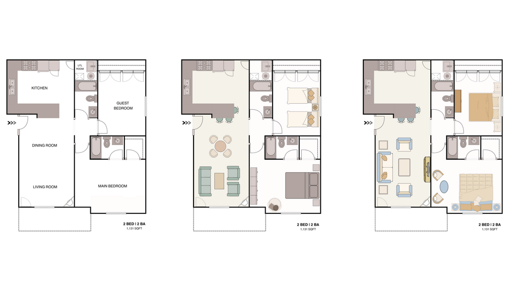 2 Dormitorios, 2 Baños, 1150 pies²Galería del Modelo
