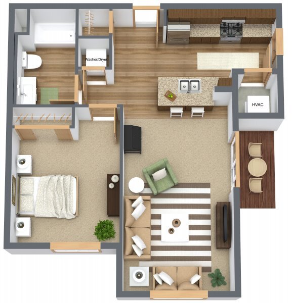 1 Dormitorio, 1 Baño, 700-770 pies²Galería del Modelo