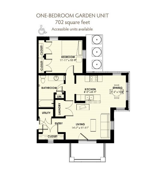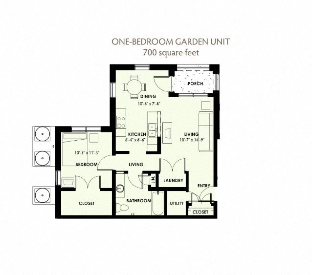 Modelo de apartamento: 1 Bedroom Tax Credit***Desde $7641 Dormitorio, 1 Baño, 699 sq ftDisponible Ahora![]()