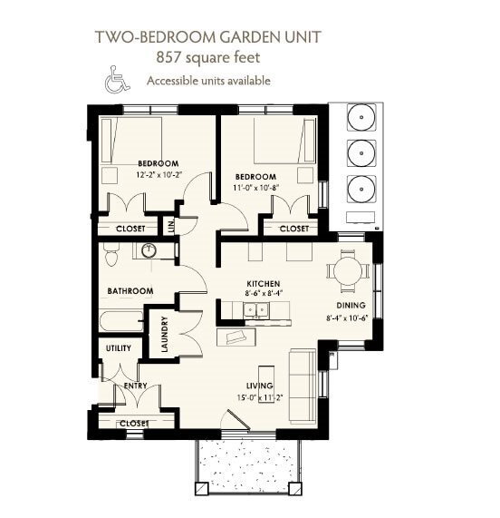 2 Dormitorios, 1 Baño, 857 pies²Disponible AhoraGalería del Modelo