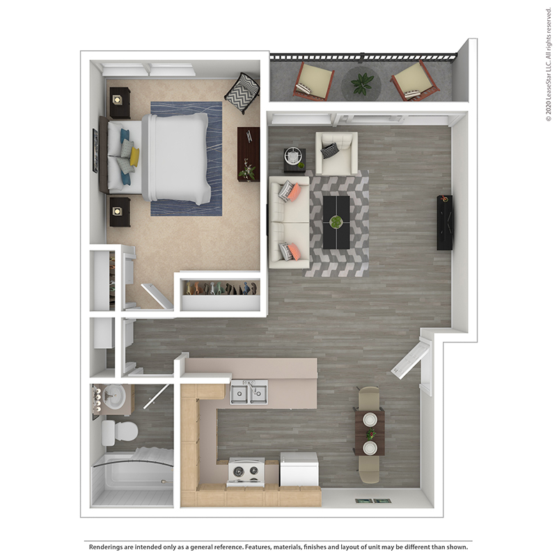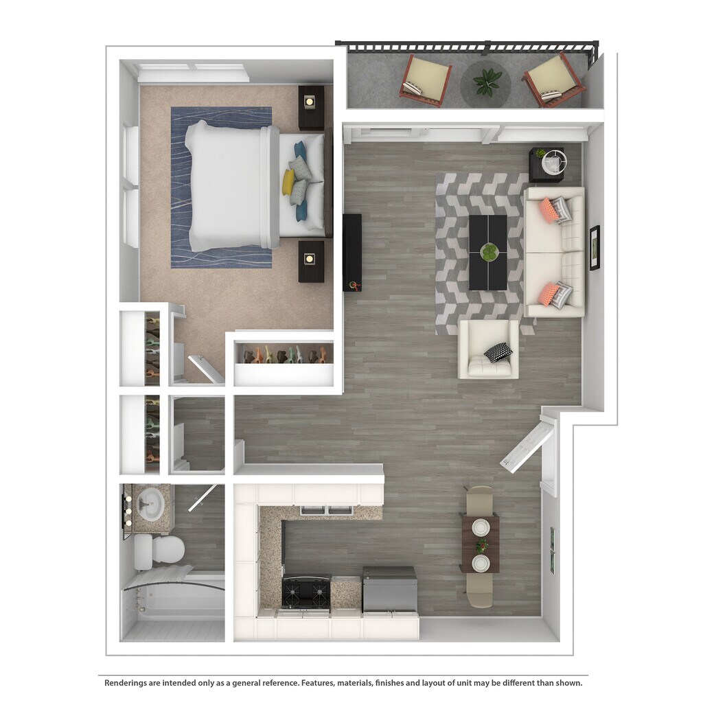 1 Dormitorio, 1 Baño, 656-670 pies²Disponible AhoraGalería del Modelo