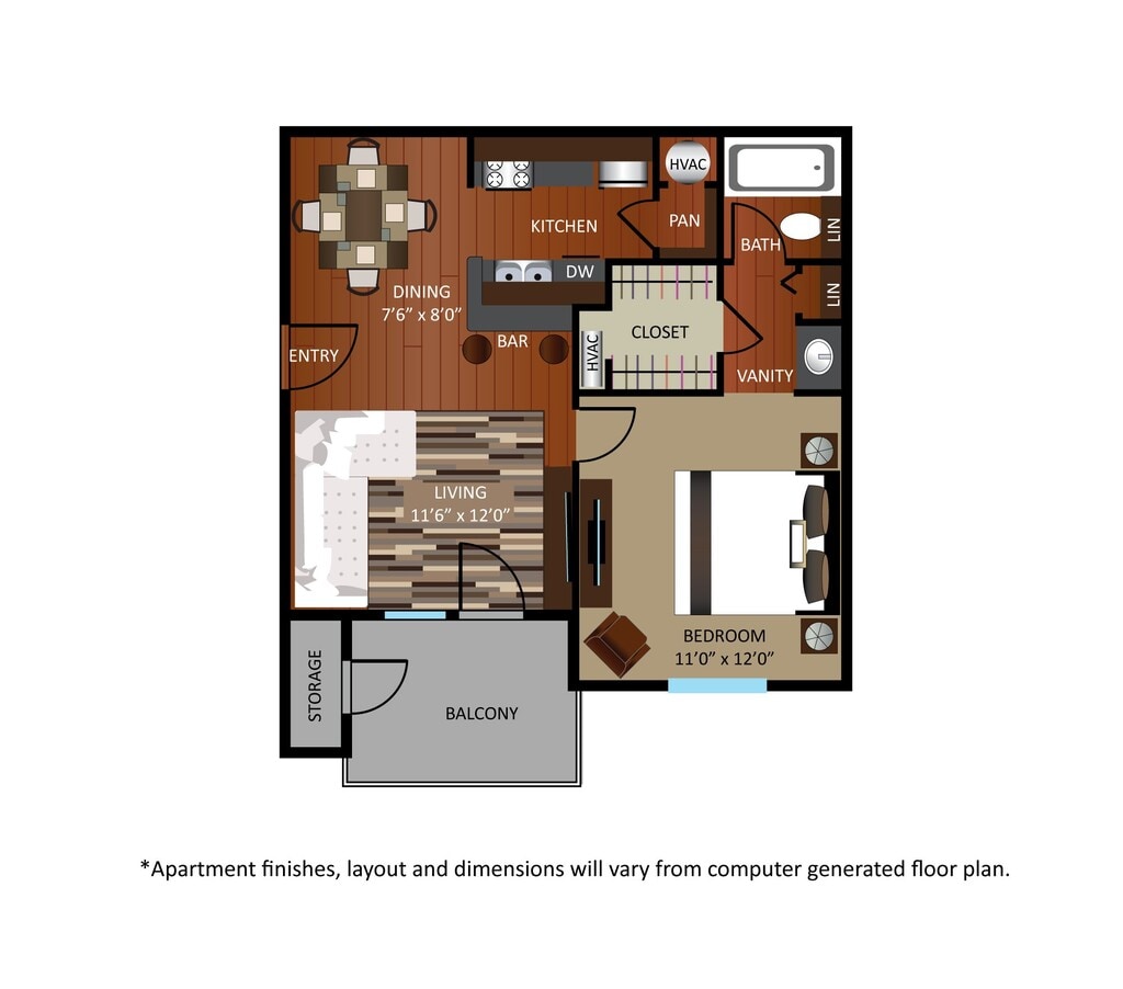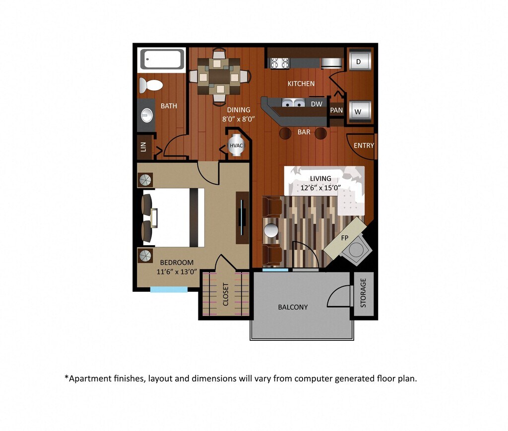 Modelo de apartamento: A1Desde $1,4061 Dormitorio, 1 Baño, 550 sq ftDisponible Ahora![]()
