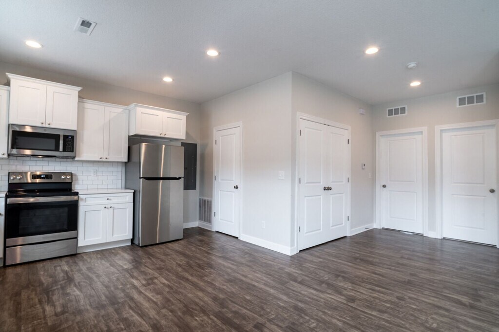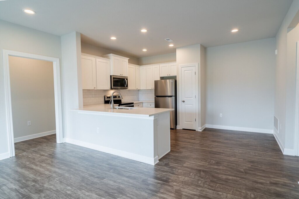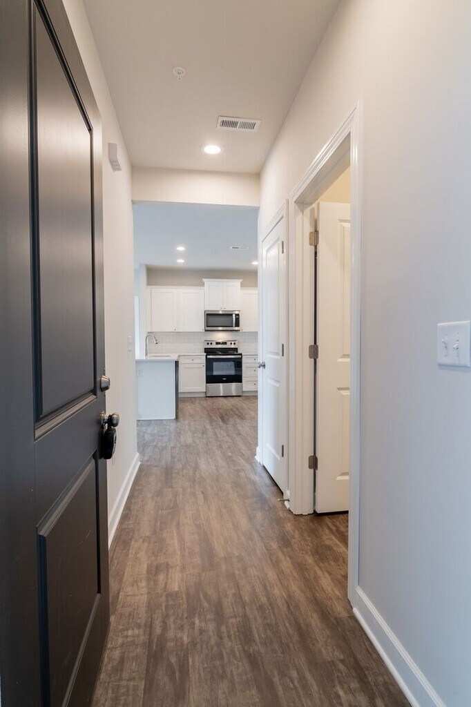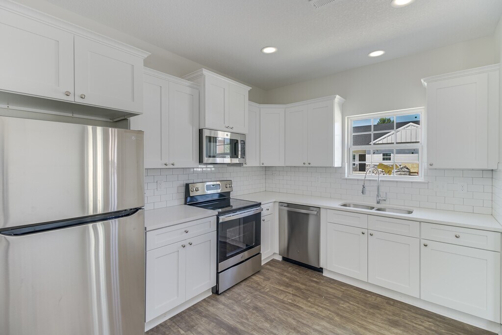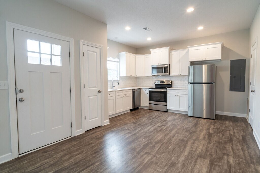 El recientemente construido de 2 habitaciones/2 baños casa adosada. Cómodo estacionamiento LVP pisos de madera, gabinetes blancos, encimeras de cuarzo y electrodomésticos de acero inoxidable. Tamaño completo, conexiones para lavadora y secadora (lavadora y secadora no incluido)