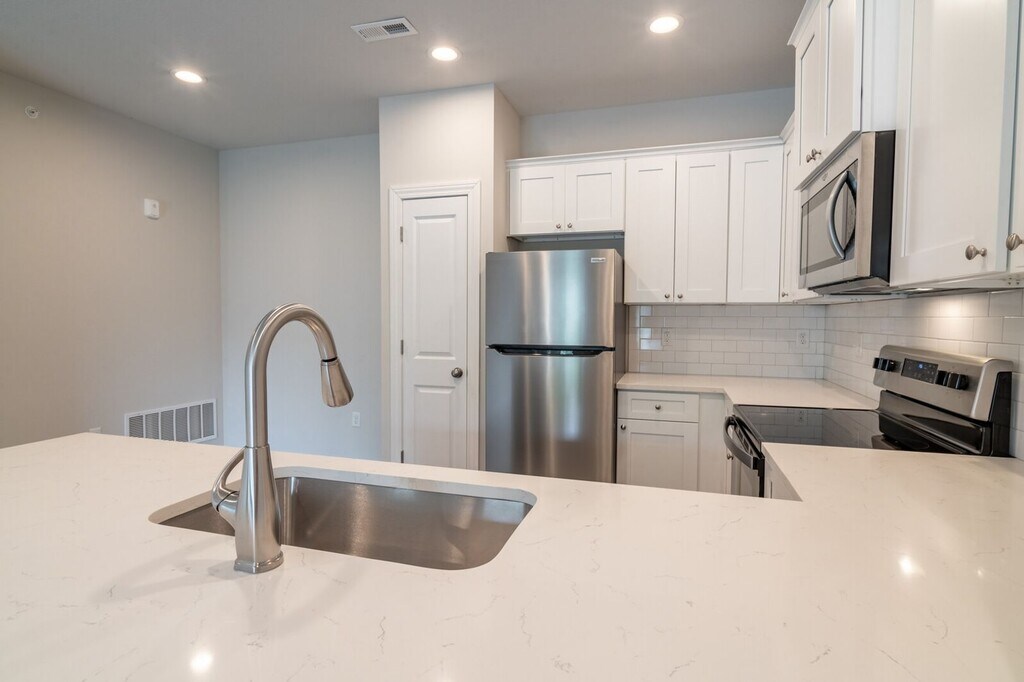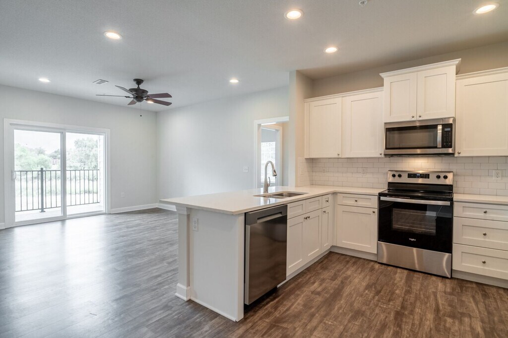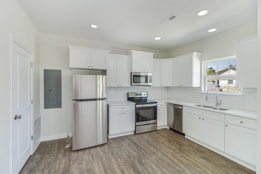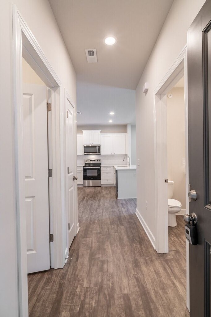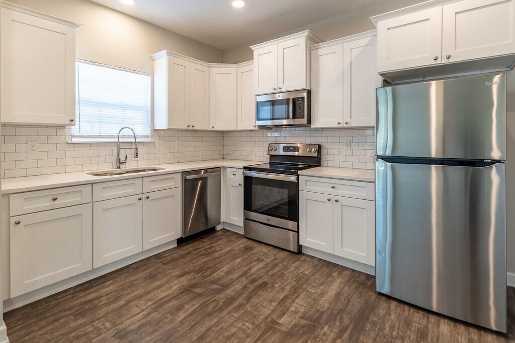 El recientemente construido de 2 habitaciones/2 baños casa adosada. Cómodo estacionamiento LVP pisos de madera, gabinetes blancos, encimeras de cuarzo y electrodomésticos de acero inoxidable. Tamaño completo, conexiones para lavadora y secadora (lavadora y secadora no incluido)
