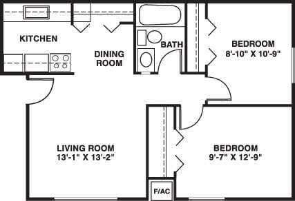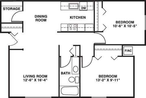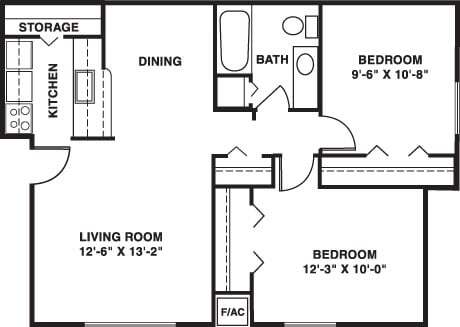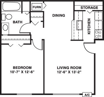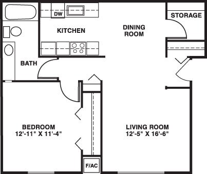 Modelo de apartamento: Standard One BedroomDesde $8571 Dormitorio, 1 Baño, 553-570 sq ftDisponible Ahora![]()