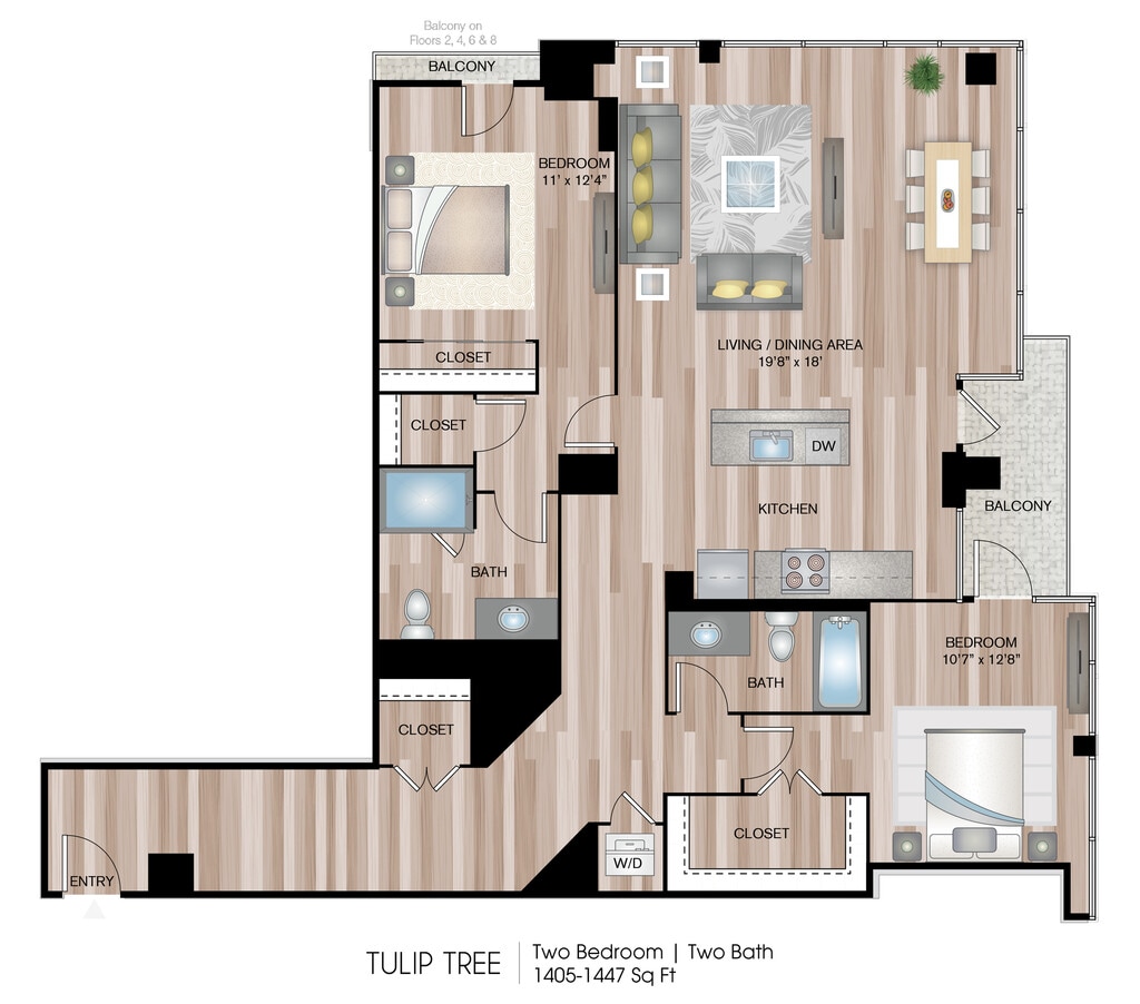 1 Dormitorio, 1 Baño, 626-724 pies²Disponible AhoraGalería del Modelo