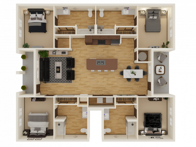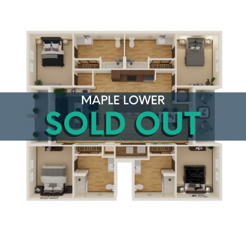 Modelo de apartamento: The Maple (Lower Deluxe)4 Dormitorios, 4 Baños, 1556 sq ftDisponible Ahora![]()