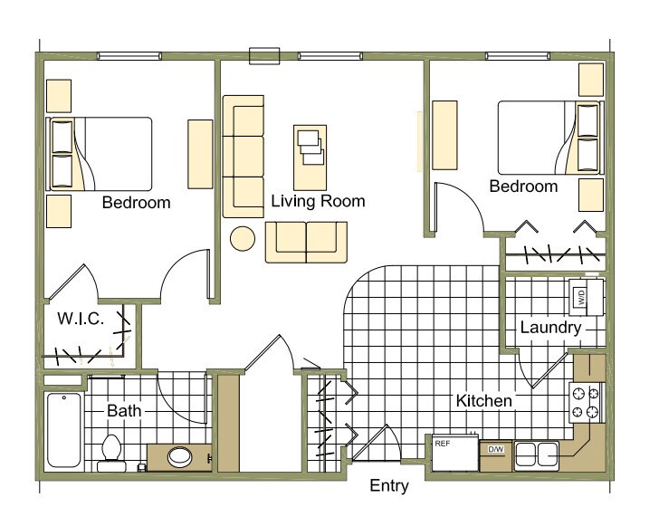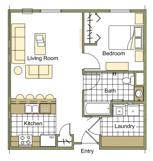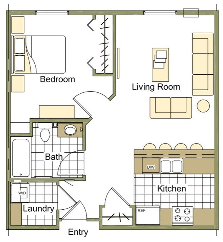 Modelo de apartamento: 1 Bed 1 BathDesde $9801 Dormitorio, 1 Baño, 620-906 sq ftDisponible Ahora![]()