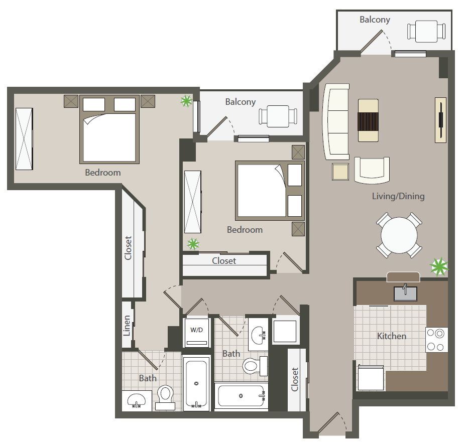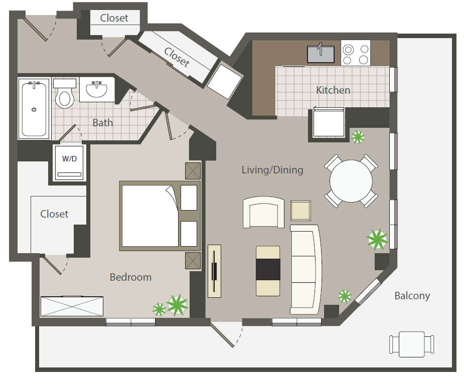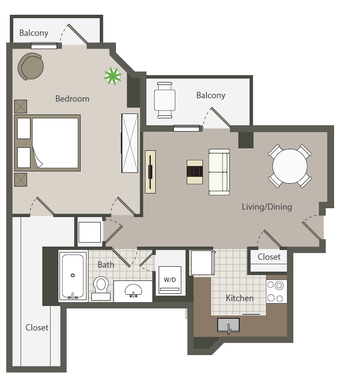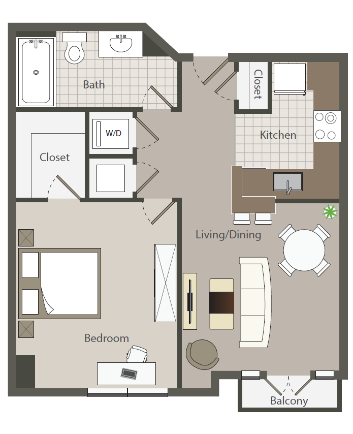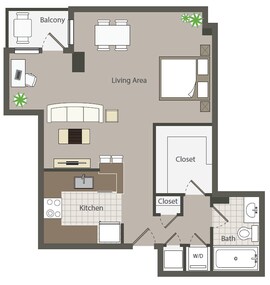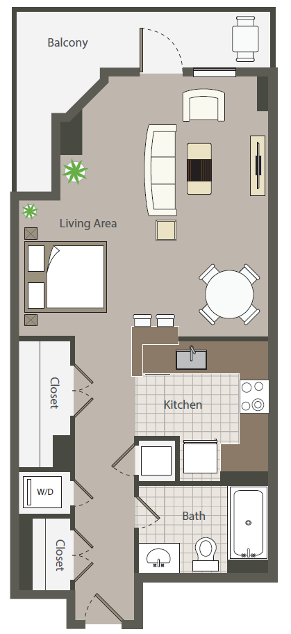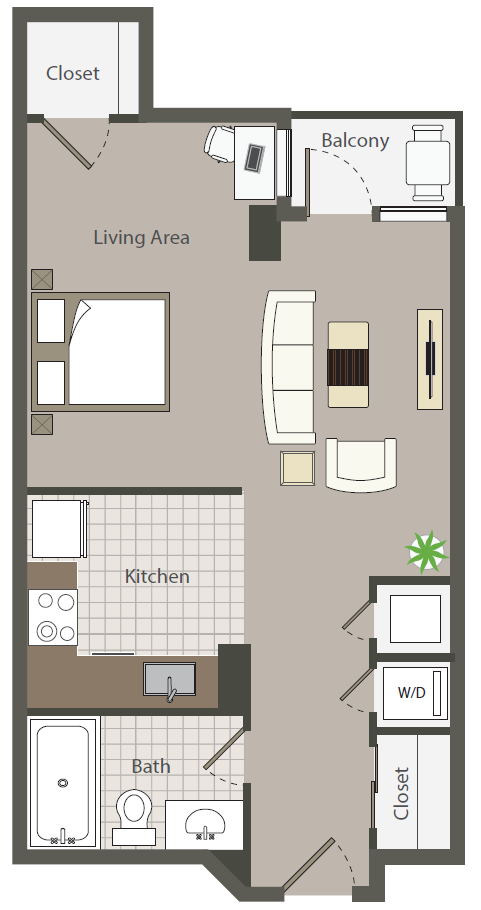 Modelo de apartamento: ST12Desde $2,888Estudio, 1 Baño, 514 sq ftDisponible Ahora![]()